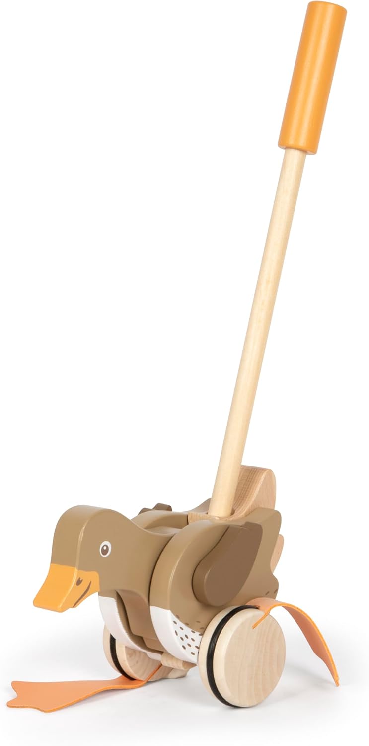 • Beim Schieben erzeugen die Füße lustige Watschel-Geräusche und Flügel und Kopf der Ente bewegen sich beim Schieben