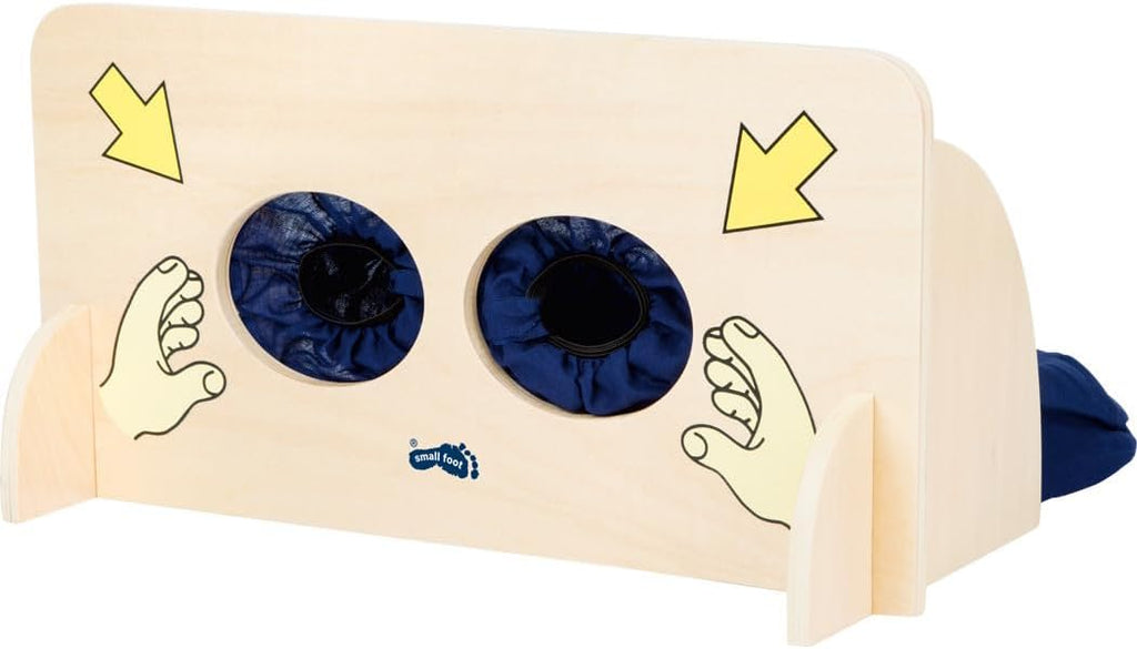 Ein Sinnesspiel, um spielerisch mit dem Tastsinn verschiedene Gegenstände zu ertasten