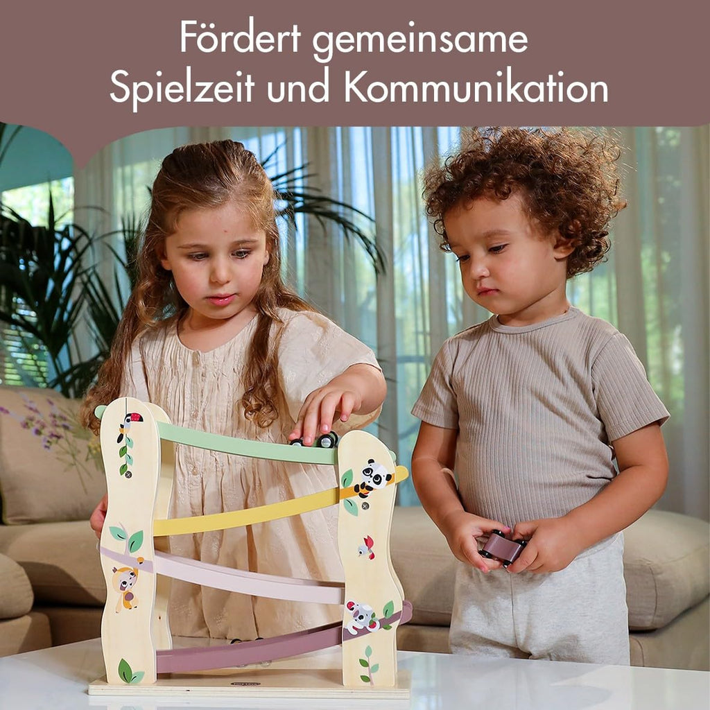 Wenn Ihr Kleinkind die leichtgängigen Holzautos auf die Autorennbahn stellt und beobachtet, wie sie ganz nach unten rollen, wird es beginnen, die Wunder der Schwerkraft zu verstehen, was die Neugier und kognitive Entwicklung fördert.Natur inspiriertes Design