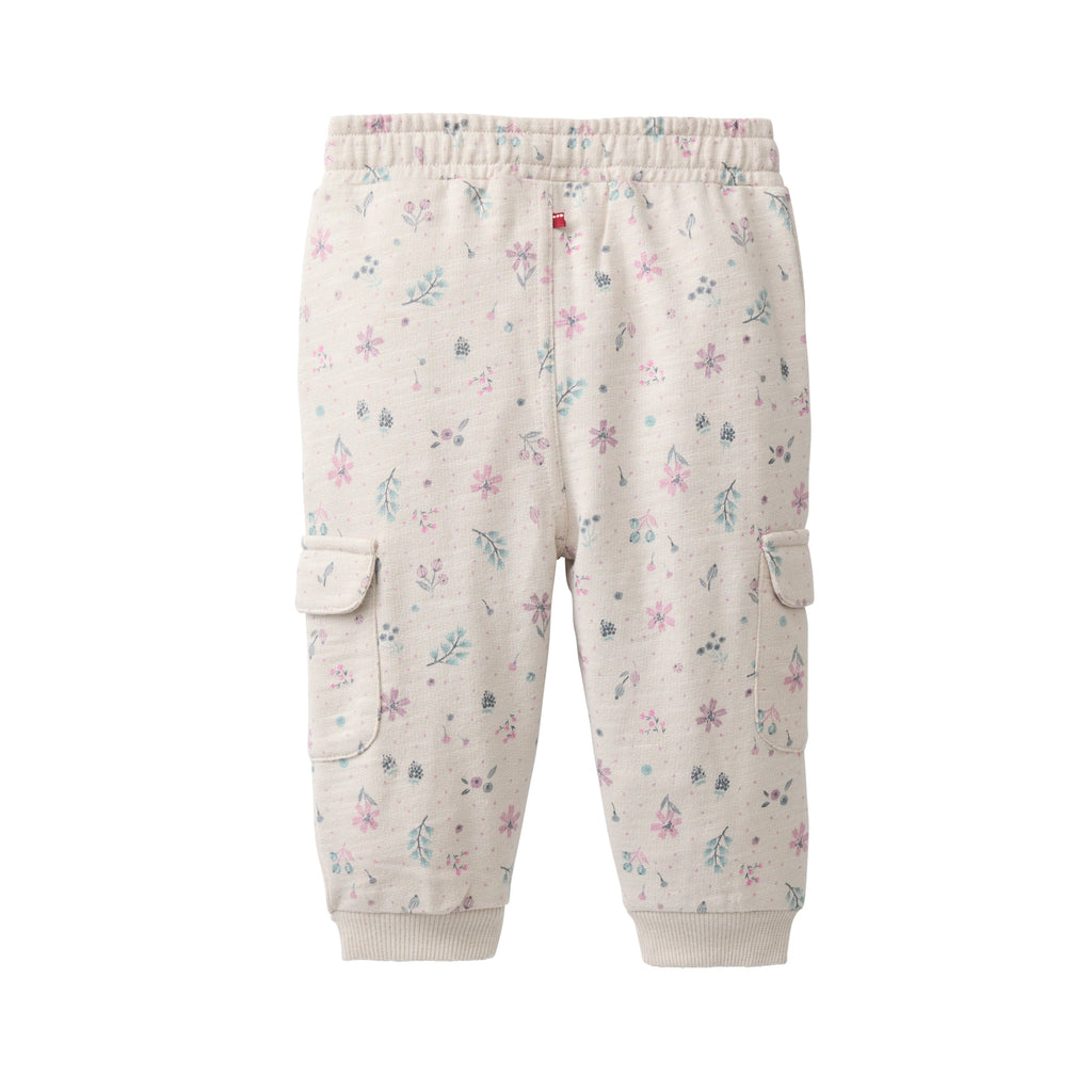 Ein interessanter Stilmix: lässige Cargohose aus kuschelweichem Sweat mit aufgesetzten Taschen trifft auf romatisch zarten Blütenprint. Mit extra viel Bequemlichkeit durch breite Bündchen an Bauch und Füßen und weitem Schnitt.