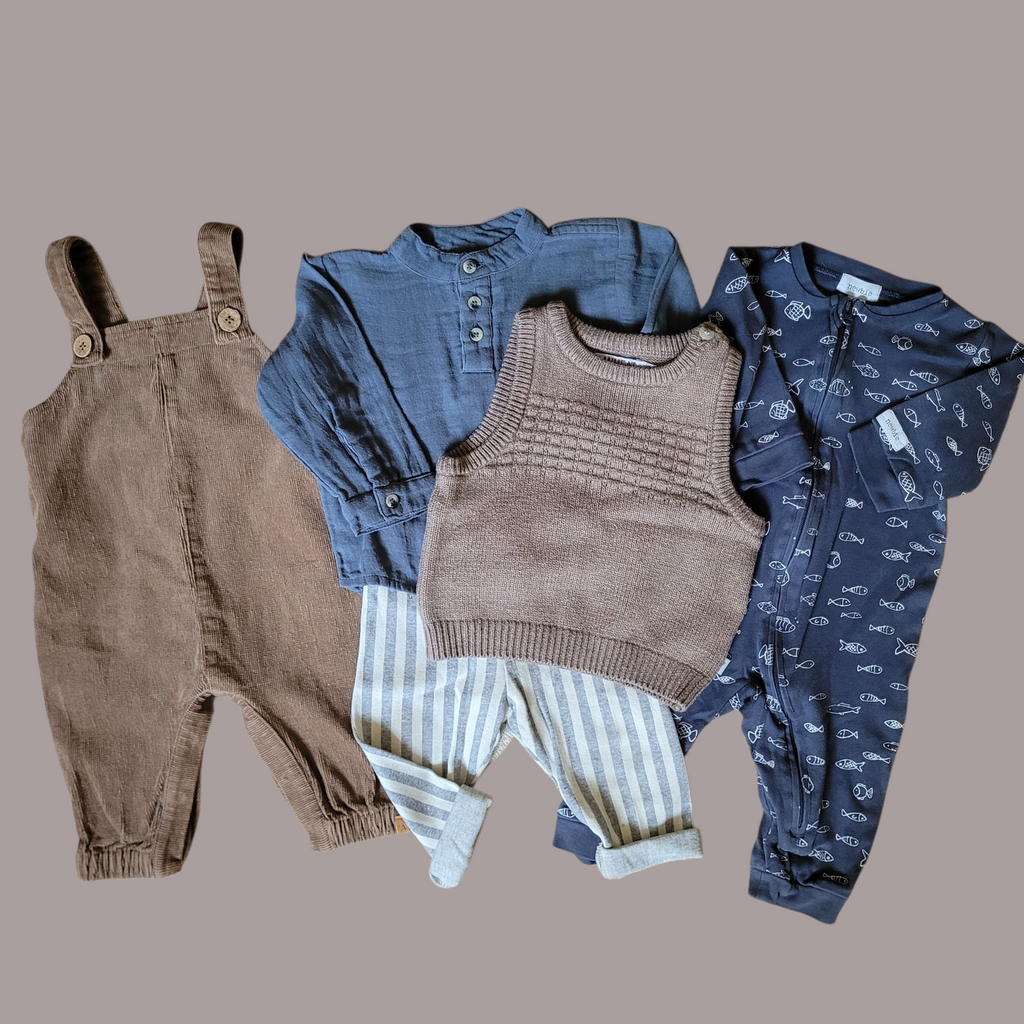 Unsere Boutique Box enthält 5 handverlesene Preloved-Teile aus zertifizierter Bio-Babykleidung – liebevoll ausgewählt und stilvoll zusammengestellt. Jedes Stück stammt von echten skandinavischen Premium-Marken wie Wheat, MarMar Copenhagen, Lil'Atelier, Müsli, Serendipity, Konges Sløjd, Soft Gallery, Joha u. v. m.