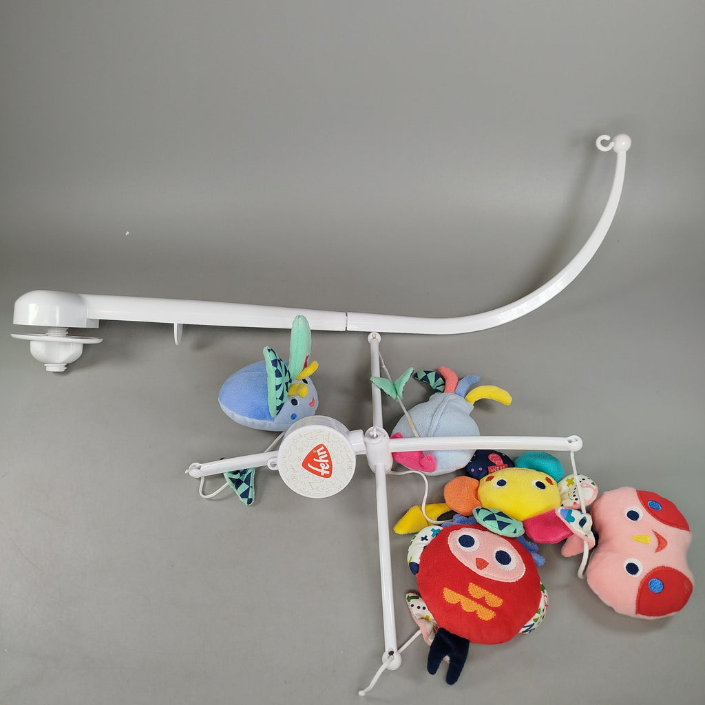 Hol dir das zauberhaft weiche Fehn Baby-Mobile mit fünf bunten Plüschfiguren und bring sanfte Bewegung ins Kinderzimmer. Die Figuren hängen an einer weißen Kunststoffhalterung und regen Babys Aufmerksamkeit und Sehvermögen an. Das Mobile besteht aus kuscheligem Stoff und hochwertigem Kunststoff. Es befindet sich in einem sehr guten gebrauchten Zustand, nur mit minimalen Gebrauchsspuren. Verpackung fehlt, aber das Spielzeug ist vollständig. Gib diesem liebevoll gestalteten Mobile ein neues Zuhause und bereite Freude im Kinderalltag.