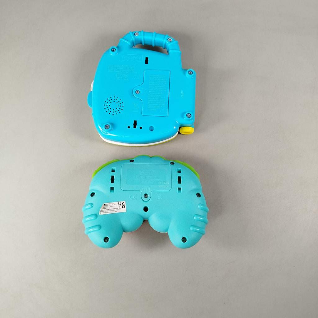 Hol dir das elektronische Fisher-Price Spielzeug-Set bestehend aus dem interaktiven Buch '123 Babys Tierfreunde' und einem farbenfrohen Gamepad. Beide Spielzeuge fördern Lernspaß und Feinmotorik durch Licht- und Soundfunktionen. Die Originalverpackung fehlt, die Spielzeuge sind neuwertig mit minimalen Gebrauchsspuren. Gib diesen beliebten Lernfreunden ein neues Zuhause und entdecke interaktives Spielen für die Kleinsten!