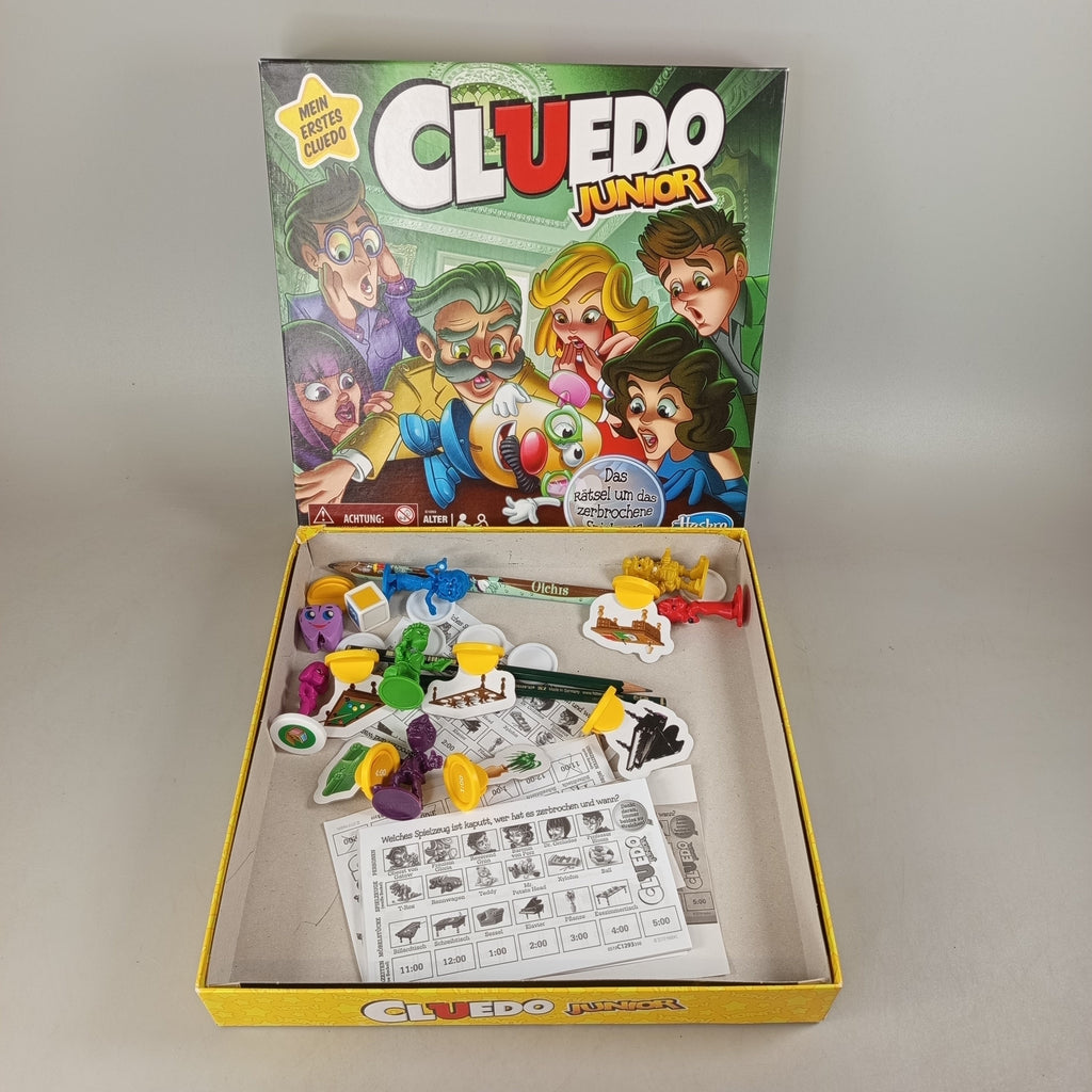 Hol dir das spannende Cluedo Junior – Mein erstes Cluedo und löse das Rätsel um das zerbrochene Spielzeug! Dieses Brettspiel enthält 6 Spielfiguren, 6 Möbelstücke, 7 Zettel, 1 Spieltafel, 1 Detektiv-Notizblock, Würfel und ein Regelnblatt mit Aufkleber. Perfekt für 2–6 Spieler ab 5 Jahren. Die Originalverpackung zeigt leichte Gebrauchsspuren, die Anleitung fehlt. Das Spiel befindet sich in einem sehr guten gebrauchten Zustand. Die Vollständigkeit konnte nicht überprüft werden. Hinweis: Enthält Kleinteile, nicht geeignet für Kinder unter 3 Jahren.