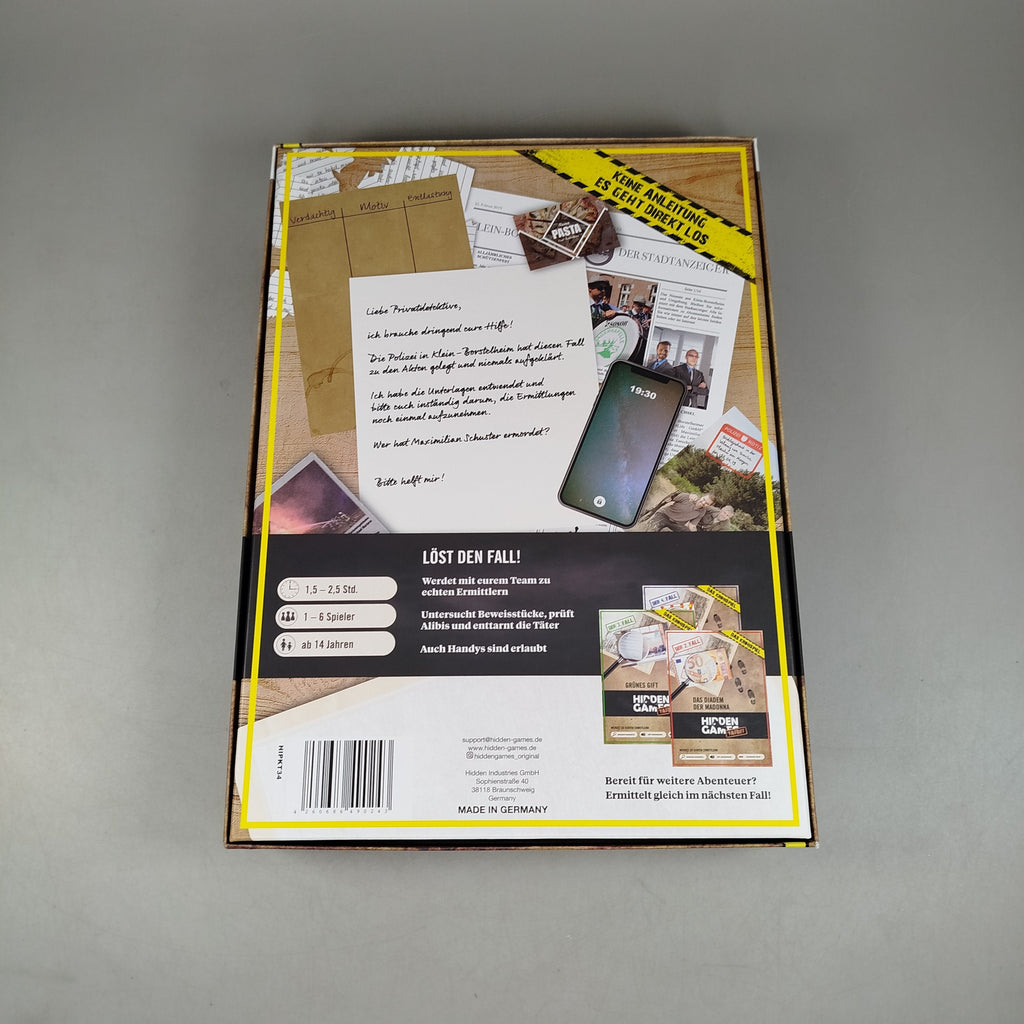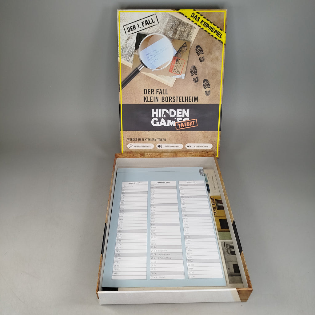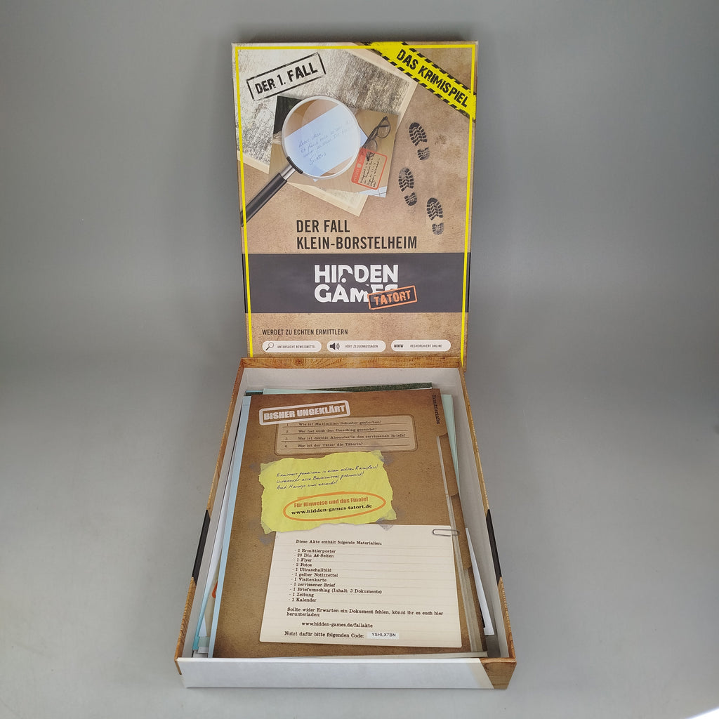 Hol dir das spannende Krimispiel ‚Der Fall Klein-Borstelheim‘ aus der Hidden Games Tatort-Reihe und schlüpfe in die Rolle des Ermittlers. Löse den ersten Fall durch das Analysieren von Beweismaterial, das Anhören von Zeugenaussagen und Online-Recherchen. Das Spiel ist für 1–6 Spieler ab 14 Jahren geeignet, bietet eine Spielzeit von etwa 1,5 bis 2,5 Stunden und ist komplett auf Deutsch erhältlich. Die Box befindet sich in gutem gebrauchten Zustand und enthält die Anleitung. Die Vollständigkeit konnte nicht überprüft werden. Nachhaltig gespielt – gib diesem Detektivspiel ein zweites Leben!