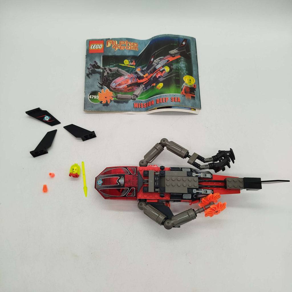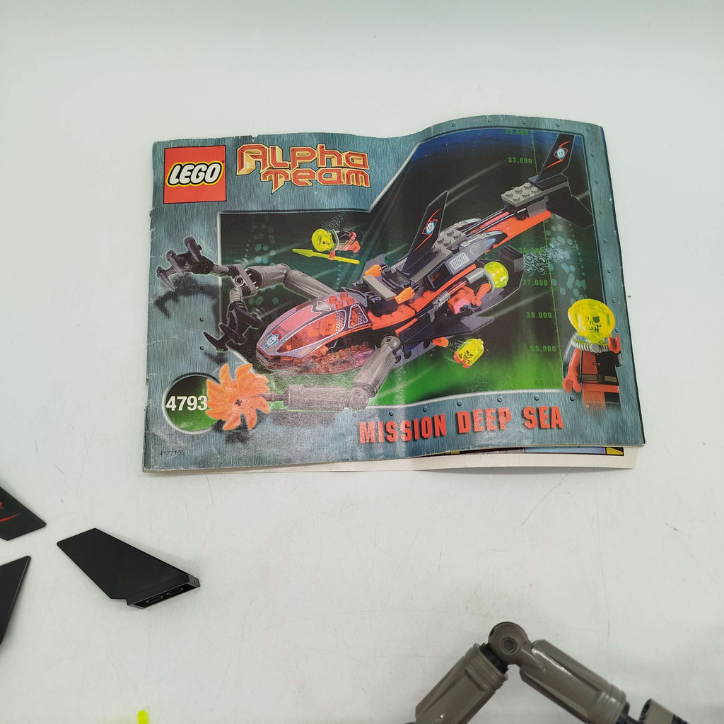 LEGO Alpha Team Mission Deep Sea Ogel Shark Sub 4793 ist ein LEGO Bau- und Konstruktionsspielzeug, das ein Unterwasserfahrzeug aus der Alpha Team Reihe umfasst. Das Modell enthält einen teilweise montierten U-Boot-ähnlichen Apparat mit beweglichen Greifarmen, Propellern und verschiedenen Einzelteilen sowie einen gelben Minifigur-Kopf. Dieses LEGO Set fördert Kreativität und Feinmotorik. Altersempfehlung: 6–9 Jahre. Achtung: Nicht für Kinder unter 3 Jahren geeignet, Erstickungsgefahr wegen verschluckbarer Kleinteile.