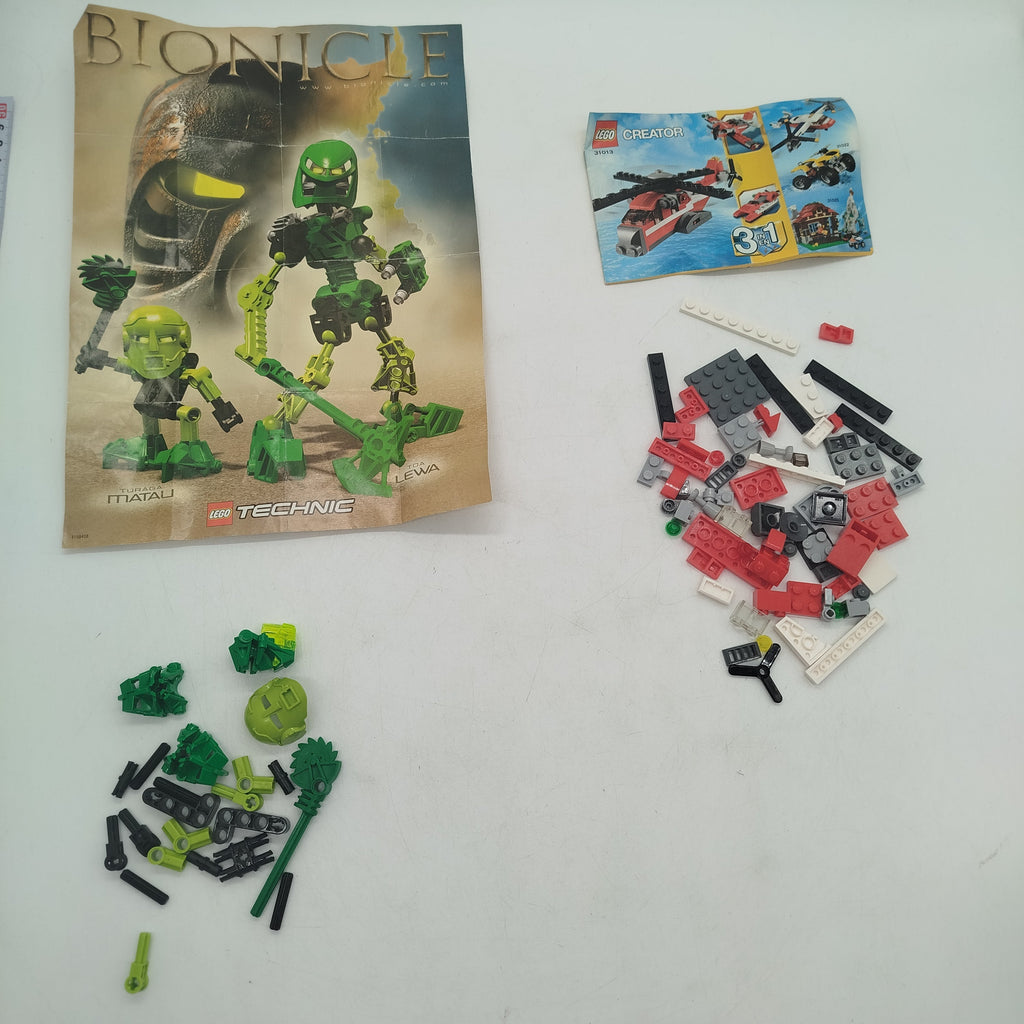 Hol dir das LEGO Bionicle & Creator Bau-Set Konvolut mit den Modellen Toa Lewa und Creator 31013 Red Thunder. Enthalten sind zwei Anleitungshefte und verschiedene LEGO Steine, die zu beiden Sets gehören können. Ideal für kreative Bauprojekte und Sammler klassischer LEGO Reihen. Die Vollständigkeit konnte nicht überprüft werden. Feine Gebrauchsspuren sind vorhanden. Verpackung fehlt, Anleitungen sind enthalten. Das Set befindet sich in einem sehr guten gebrauchten Zustand. Hinweis: Enthält Kleinteile, nicht geeignet für Kinder unter 3 Jahren, Erstickungsgefahr!