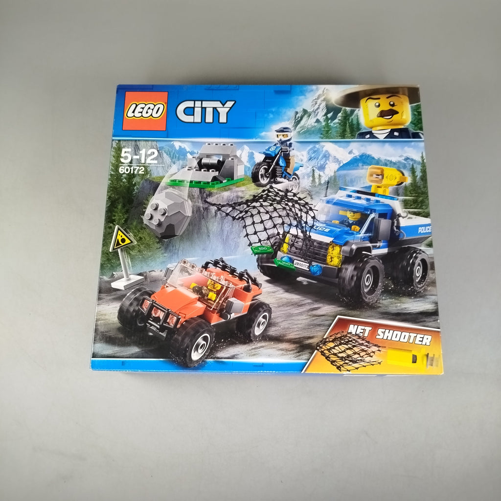 Hol dir das LEGO City Set Gebirgsverfolgung 60172 und erlebe spannende Polizeieinsätze in den Bergen! Das Set enthält eine Polizeigeländewagen mit Netzwerfer, einen roten Fluchtwagen, ein Motorrad, ein Felsversteck mit Falle, drei Minifiguren sowie Zubehör wie Geldscheine und Handschellen. Ideal für kreatives Rollenspiel und Bauspaß in der LEGO City Welt. Das Set ist vollständig, neuwertig und kommt in Originalverpackung mit Anleitung. Hinweis: Nicht für Kinder unter 3 Jahren geeignet, da Kleinteile verschluckt werden können.