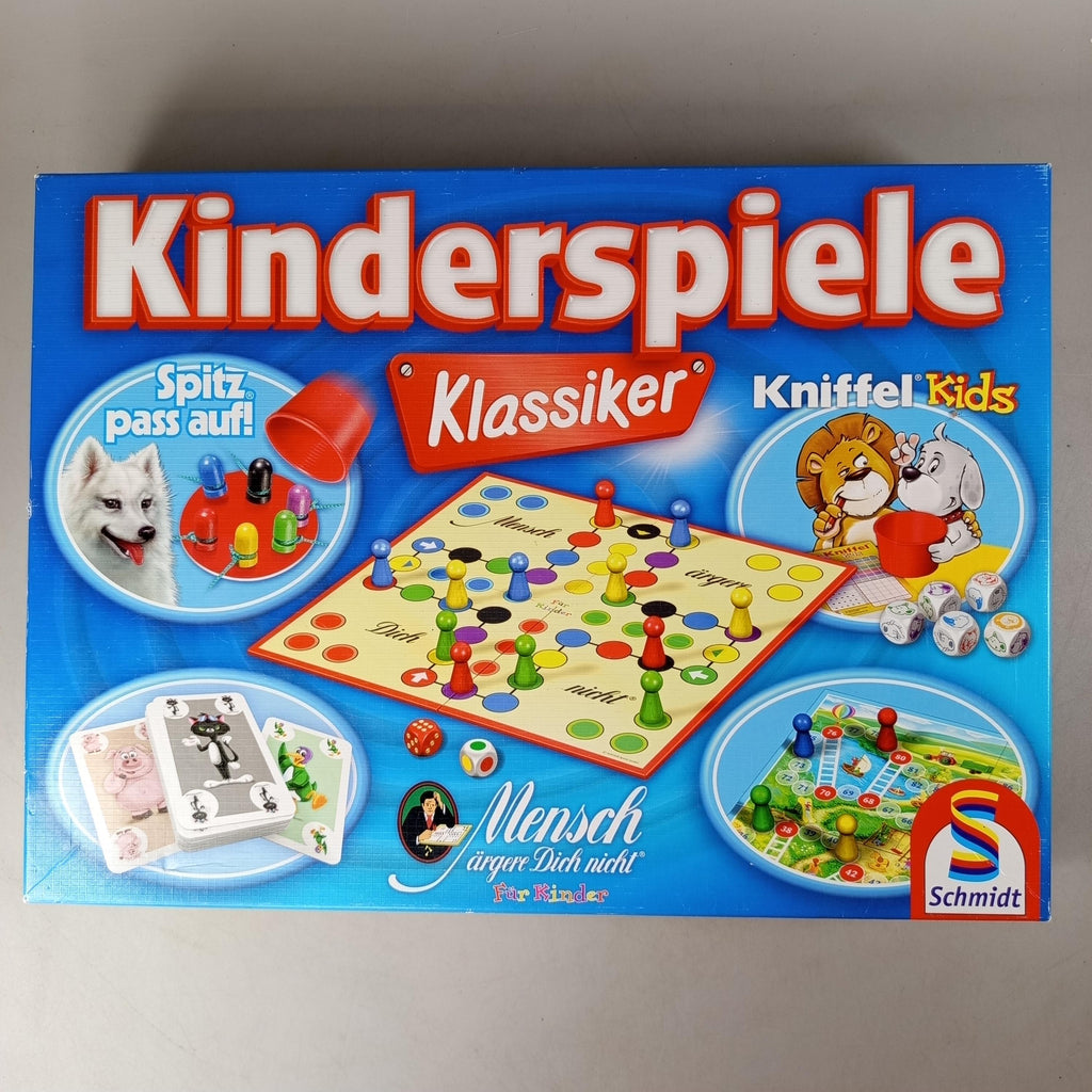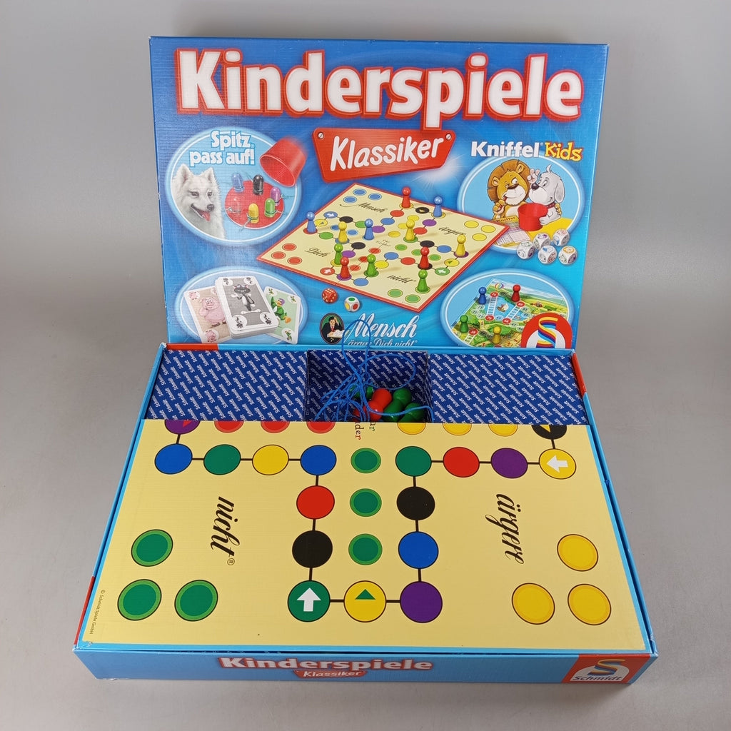 Hol dir das Schmidt Brettspiel-Set „Kinderspiele Klassiker“ und entdecke fünf beliebte Spielklassiker: Mensch ärgere Dich nicht für Kinder, Spitz pass auf!, Kniffel Kids, Schwarzer Peter und Leiterspiel. Das Set enthält Spielfiguren und Würfel und bietet abwechslungsreichen Spielspaß für die ganze Familie. Das Spiel befindet sich in einem sehr guten gebrauchten Zustand, die Verpackung zeigt nur leichte Gebrauchsspuren. Die Vollständigkeit konnte nicht überprüft werden. Hinweis: Enthält Kleinteile, nicht geeignet für Kinder unter 3 Jahren.