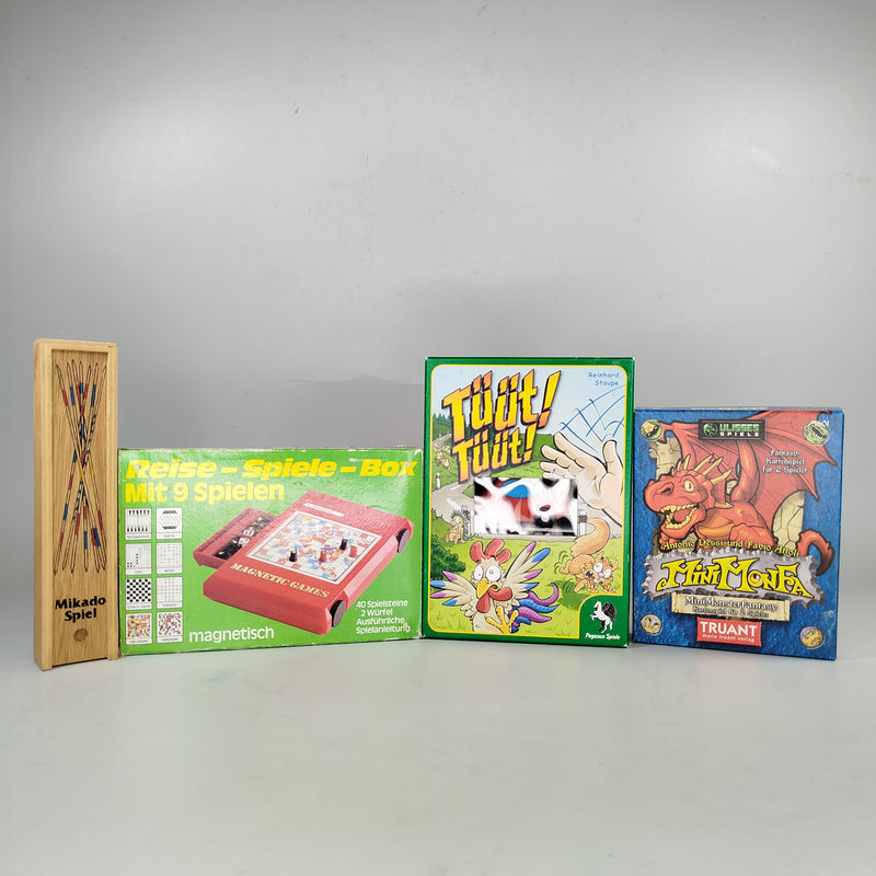 Dieses umfassende Spielset enthält eine Vielzahl beliebter Brett- und Kartenspiele, die für stundenlangen Spaß und Unterhaltung sorgen. Enthalten sind unter anderem: ein magnetisches Spiel mit herausziehbarem Aufbewahrungsfach, ein Kartenspiel mit einem roten Spielzeugauto zum Thema Tüüt Tüüt, das klassisches Mikado-Spielmanagement mit bunten Holzstäbchen bietet, sowie das lustige Kartenspiel Munchkin Tiny Monsters. Jedes Spiel besticht durch einzigartige Themen und Spielmechaniken, die sowohl für Kinder als auch Erwachsene geeignet sind. Enthaltene individuelle Anleitungen und Spielpläne stellen sicher, dass der Einstieg ins Spiel einfach und schnell ist. Produktsicherheitshinweis: Geeignet für Kinder ab 6 Jahren; Beaufsichtigung von Erwachsenen empfohlen, besonders bei kleineren Einzelteilen.