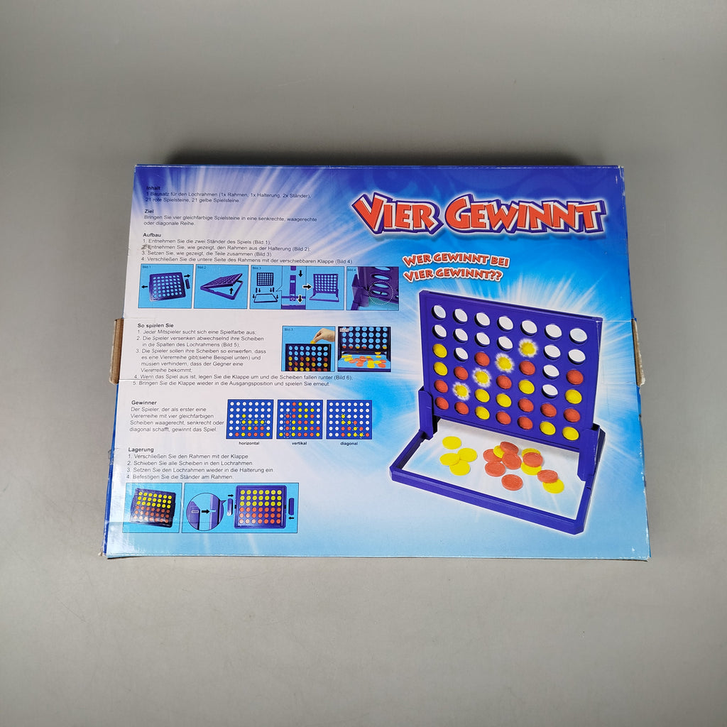 Hol dir das beliebte Brettspiel Vier Gewinnt und fordere Freunde oder Familie zu spannenden Duellen heraus! Das Spiel enthält ein senkrechtes Spielfeld und 42 Spielscheiben in Rot und Gelb. Ziel ist es, vier Scheiben deiner Farbe in eine Reihe zu bringen. Das Spiel eignet sich perfekt für strategisches Denken und kurzen Spielspaß von etwa 20 Minuten. Es ist vollständig und befindet sich in sehr gutem gebrauchten Zustand. Verpackung mit minimalen Gebrauchsspuren. Gib diesem Klassiker ein neues Zuhause und spiel erneut um den Sieg!