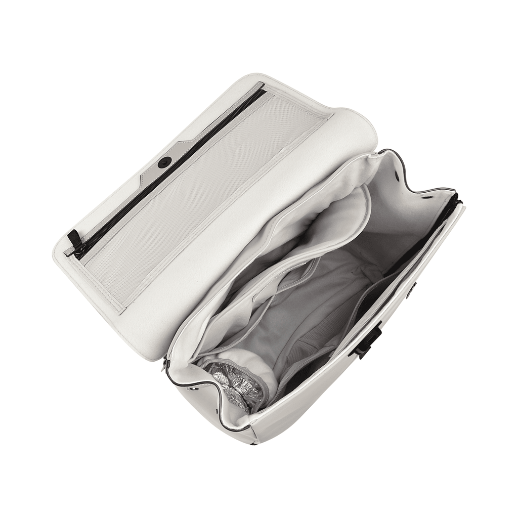 Und das Beste? Der Rucksack ist bequem und robust. Die gepolsterten Henkel und der Rücken schaffen einen bequemen Sitz. Ein Air Flow-Ausschnitt am Rücken lässt dabei die Luft gut zirkulieren. Sollte die Tasche doch mal zu schwer werden, kann sie einfach am Kinderwagen befestigt werden. Denn: Kinderwagenhaken sowie eine Wickelunterlage sind inklusive – so kannst du mit Leichtigkeit auch längere Ausflüge meistern. Die Unterlage sorgt dafür, dass du dein Baby immer und überall hygienisch wickeln kannst.