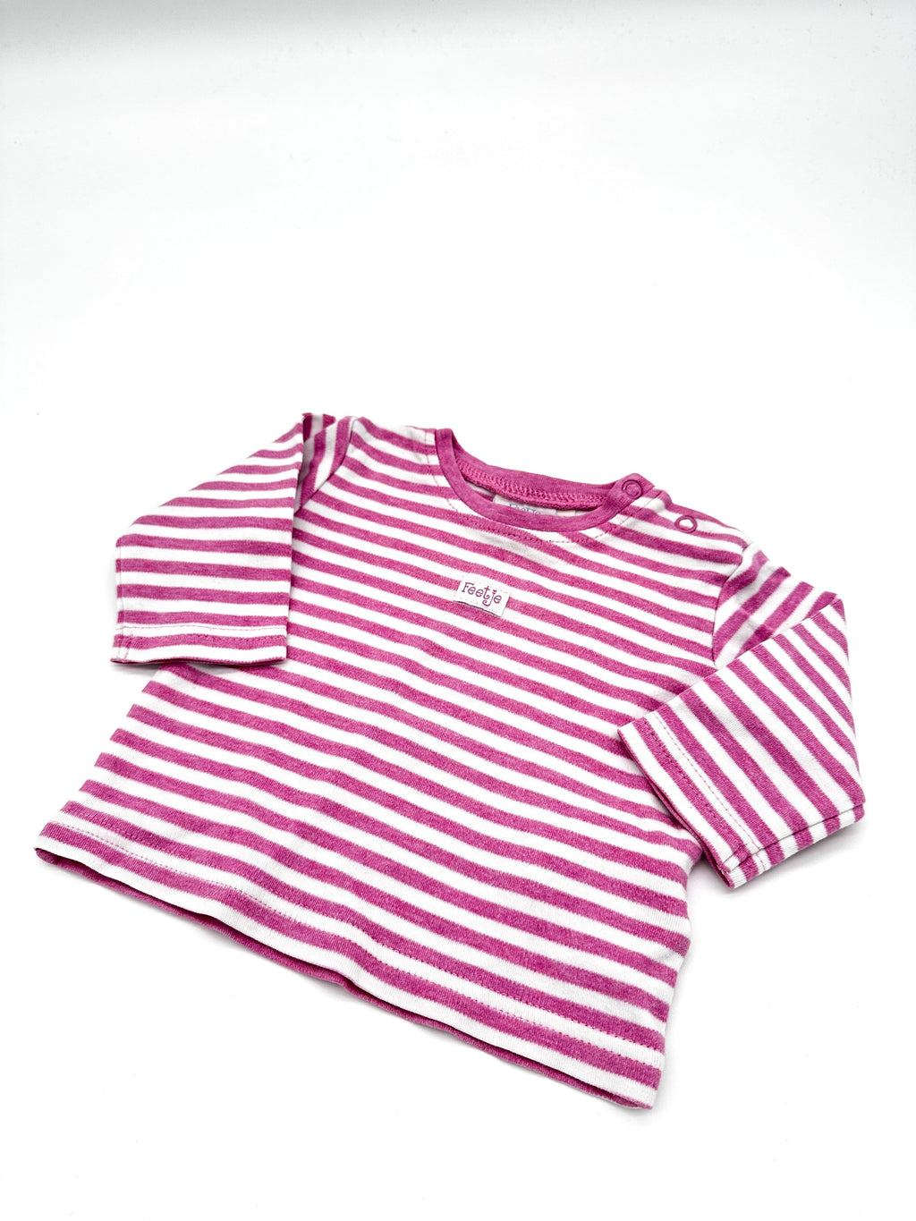 Dieses süße Langarmshirt von Feetje ist ein zeitloser Klassiker für die Baby-Garderobe. In fröhlichem Lila-Weiß gestreift bringt es Farbe in den Alltag und lässt sich wunderbar mit Hosen, Leggings oder Latzhosen kombinieren.
