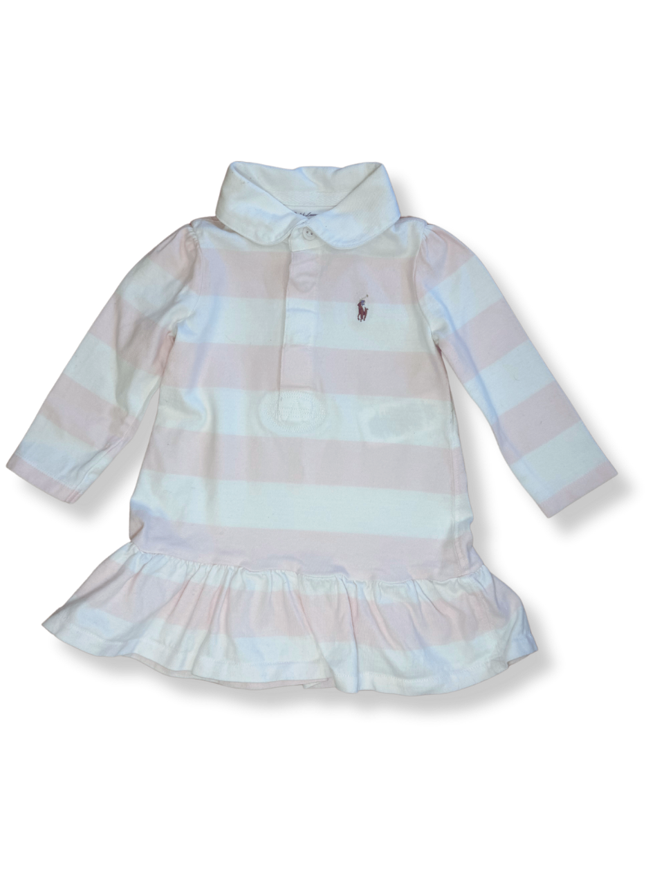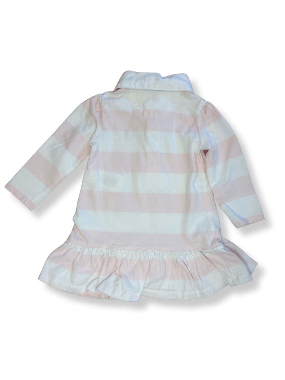 Die sanften rosa und weißen Streifen verleihen dem Langarmkleid mit Polokragen einen zeitgemäßen Look, der sowohl für den Alltag als auch für besondere Anlässe geeignet ist.