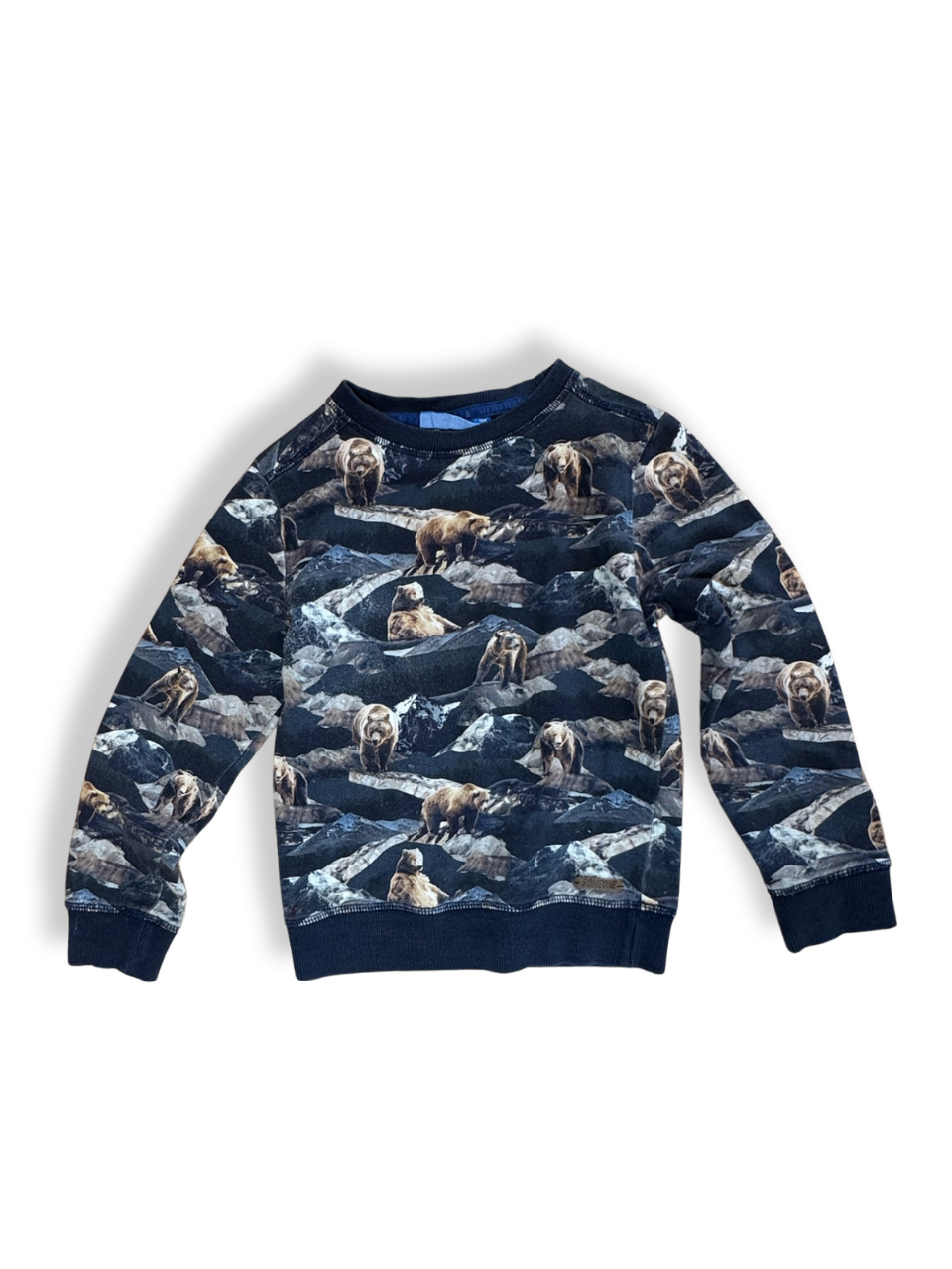 Dieser Pullover präsentiert sich mit einem großflächigen, stilisierten Bärenmuster. Das Design in verschiedenen Brauntönen auf dunklem Hintergrund macht das Stück zum Blickfang in deiner Freizeitgarderobe. Der bequeme Schnitt und das weiche Material sorgen für ein angenehmes Tragegefühl.