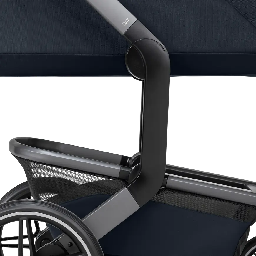 Von der verbesserten, einhändig abnehmbaren Babywanne mit hypoallergener Matratze über das XXL-Sonnenverdeck mit verschließbarem Fenster, den ergonomischen Sitz mit einhändig verstellbarer Rückenlehne bis zum flachen Liegen sowie die extrahohe Positionierung des Schiebegriffs bis zum verbesserten Fahrgestell mit neuen Bremsen, neuen Reifen, optimierter Federung und praktischem Arretier-Automatismus nach dem Zusammenfalten: Der Day⁵ ist das Ergebnis einer konsequenten Weiterentwicklung sämtlicher Vorgängermodelle und begeistert mit innovativen Verbesserungen.