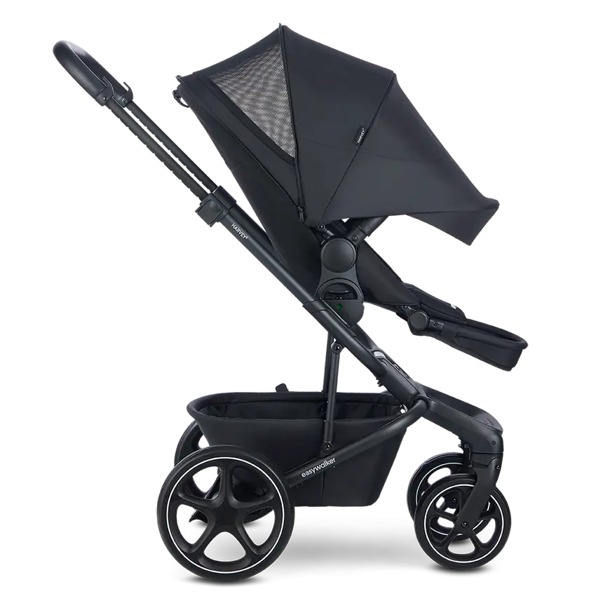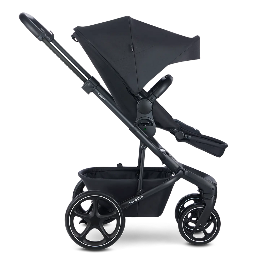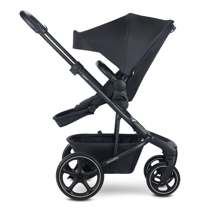 Bist du auf der Suche nach einem Kinderwagen, der einfach zu bedienen, multifunktional und bequem ist? Einen, der super kompakt ist, sich leicht zusammenfalten lässt, traumhaft fährt, deinen Nachwuchs auf seiner Reise durchs Leben bei Laune hält und nur 11 Kilo wiegt? Dann hast du ihn gefunden! Begrüße den Easywalker Harvey⁵ Midnight Black, der Bestseller, der dich überall im Leben hinbringt.