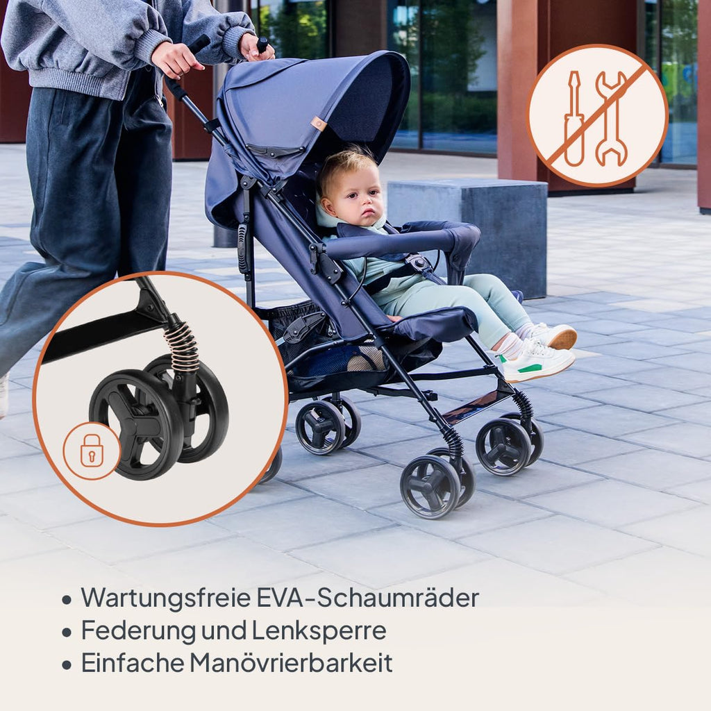 SICHER UND HANDLICH: Elia Kinderwagen hat einfaches Faltsystem, Braucht nicht viel Platz nach dem zusammenlegen, Buggy mit Tragegriff und dem Gewicht von nur 7 kg gut auch auf Reise, in der Straßenbahn oder im Autokofferraum