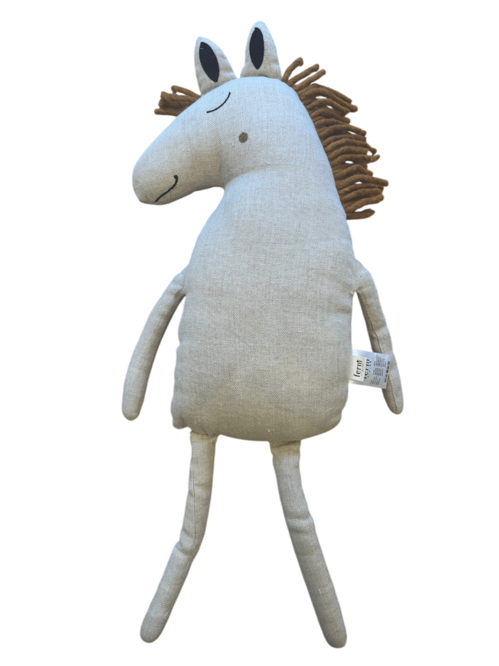 Dieses gemütliche Pferde-Secondhand-Kissen von ferm living ist ein echter Blickfang und sorgt für eine stilvolle und gemütliche Atmosphäre im Kinderzimmer. Das niedliche Pferde-Motiv in Beige wird jedes Kinderherz höher schlagen lassen und kann vielseitig kombiniert werden.