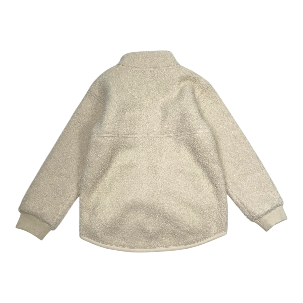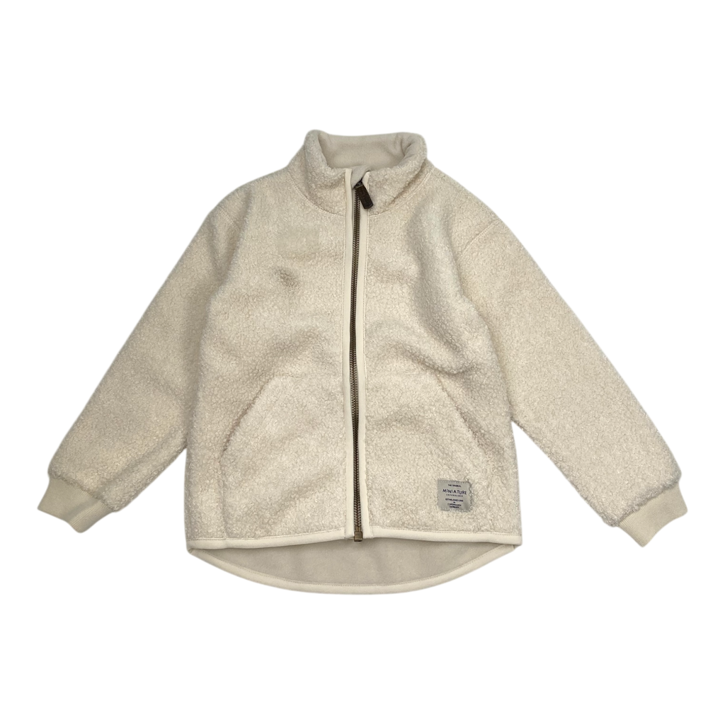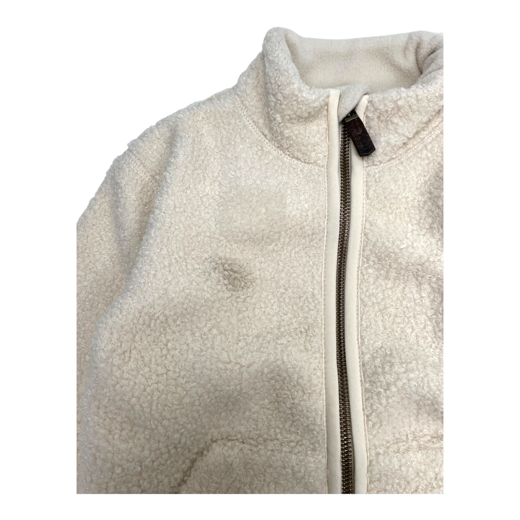 Mini A Ture Matcedric sheep teddy jacket has ribbed cuffs and a zipper closure in the front. The item has a stain.