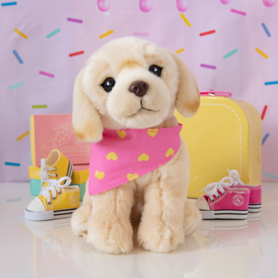 Erlebe den charmanten Happy, den super weichen Labrador von STUDIO PETS, der mit seinem liebevollen Halstuch zum Kuscheln und Spielen einlädt. Mit einer Größe von 23 cm ist dieses Plüschtier der perfekte Begleiter für Kinder ab 0 Jahren.
