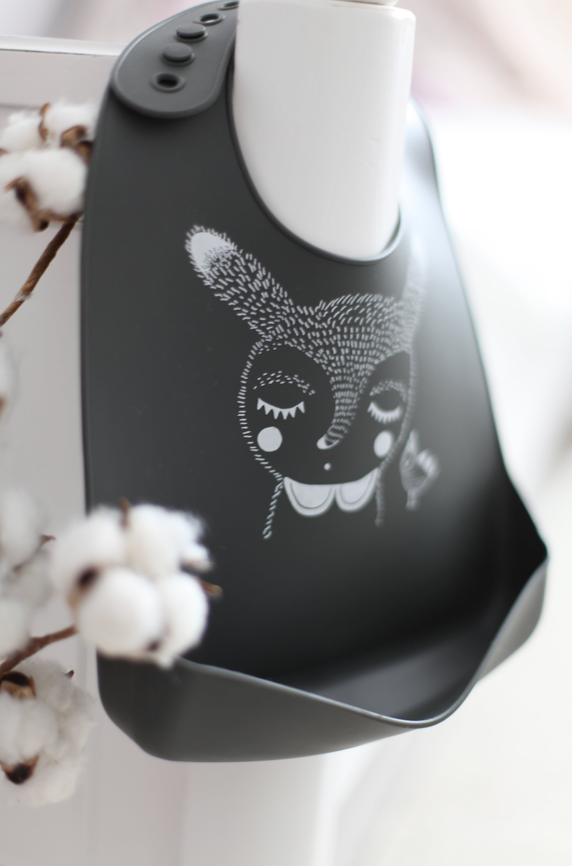 - Design: Die matte Oberfläche verleiht dem Lätzchen einen eleganten Look, während das niedliche Motiv zum Spielen einlädt.