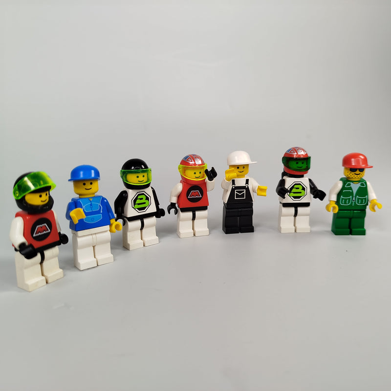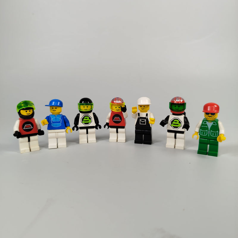Hol dir das Rennfieber in deine LEGO-Welt mit diesem Set aus 8 LEGO Racing- und Arbeiter-Minifiguren! Diese detailreichen Figuren verkörpern Rennfahrer und Teammitglieder, die bereit sind, jedes Rennen zu gewinnen. Mit ihren farbenfrohen Rennanzügen und Helmen sowie einem Mechaniker und einem Arbeiter bieten sie zahlreiche Spielmöglichkeiten. Ob auf der Rennstrecke oder in der Werkstatt – diese Minifiguren sind perfekt für actiongeladene Abenteuer in deiner LEGO-Stadt oder Rennwelt. Die Figuren sind gebraucht, aber in gutem Zustand und bereit, neue Herausforderungen zu meistern.