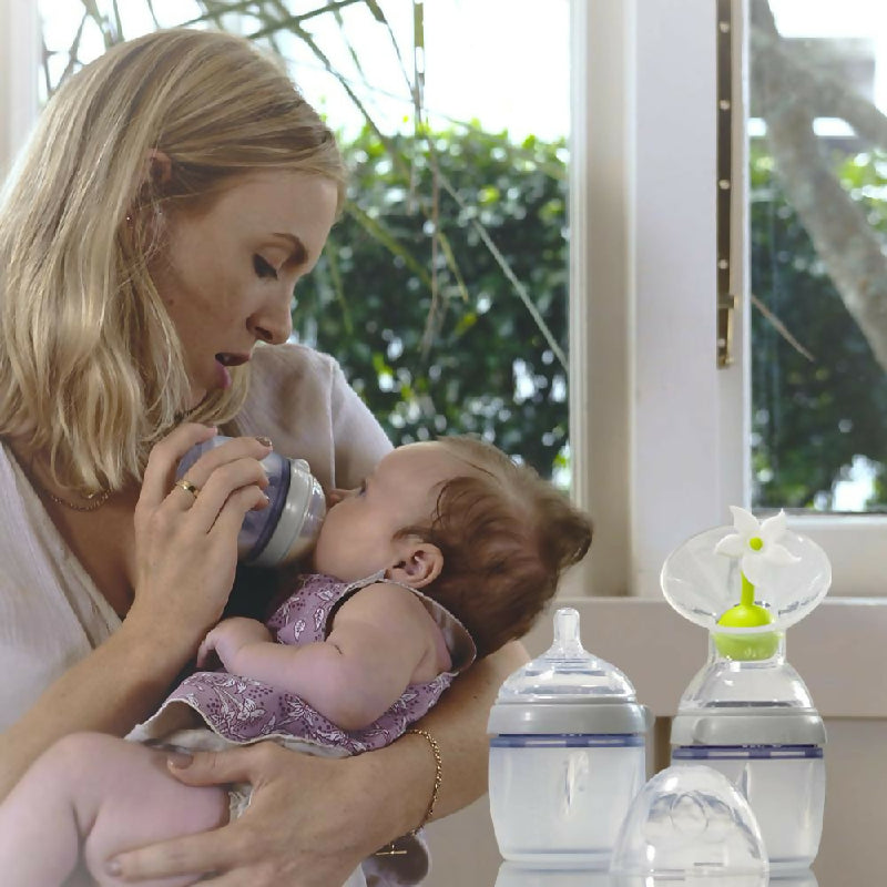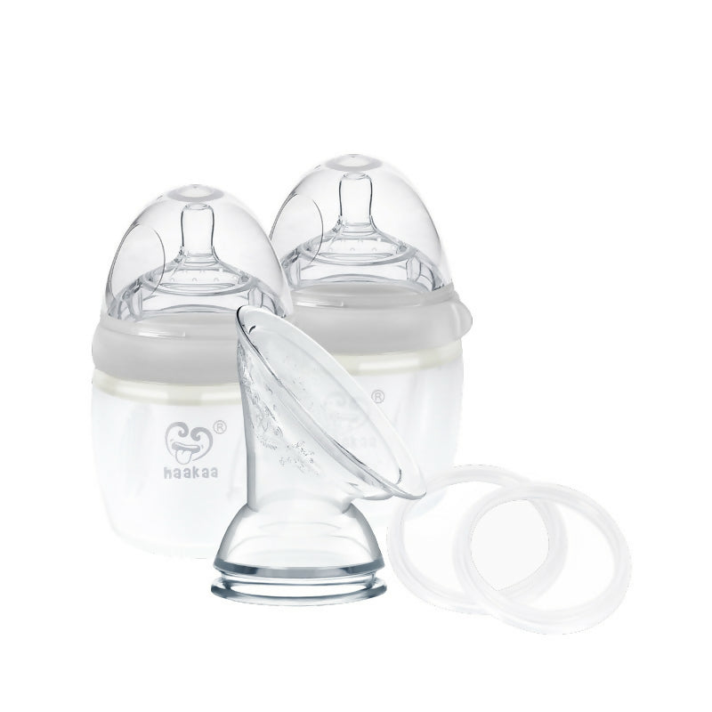 Mit dem Brusthauben-Aufsatz lässt sich die Muttermilch direkt in den Aufbewahrungsbecher gewinnen, auf welchen der Schoppen-Aufsatz geschraubt werden kann. Dank den Silikon Verschlussdeckeln lässt sich Milch, Brei oder Snacks praktisch in den Silikonbechern aufbewahren.