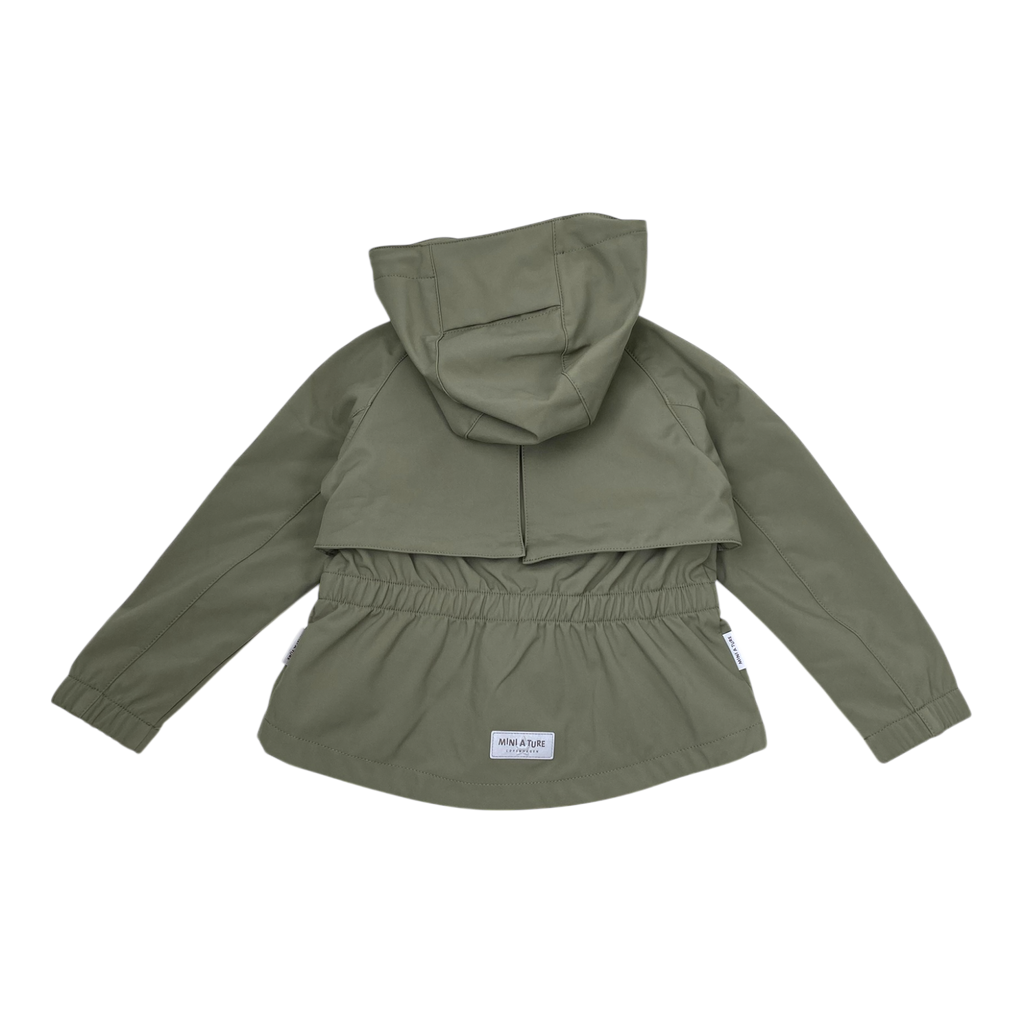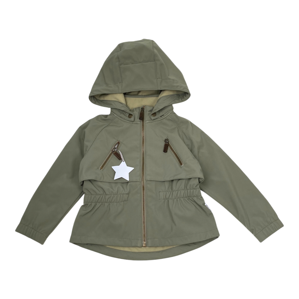 Mini A Ture Matbriddi is a midseason softshell jacket with a removable hood. There is ribbed cuffs, two front pockets, a reflective logo and zipper closure in the front. The waist can be adjusted for better fit.
