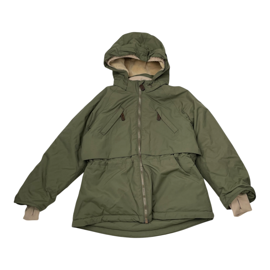 Mini A Ture Matalgeana fleece lined winter jacket with a zipper closure in the front, three front pockets, ribbed cuffs and a reflecting logo on the back. Excellent condition.