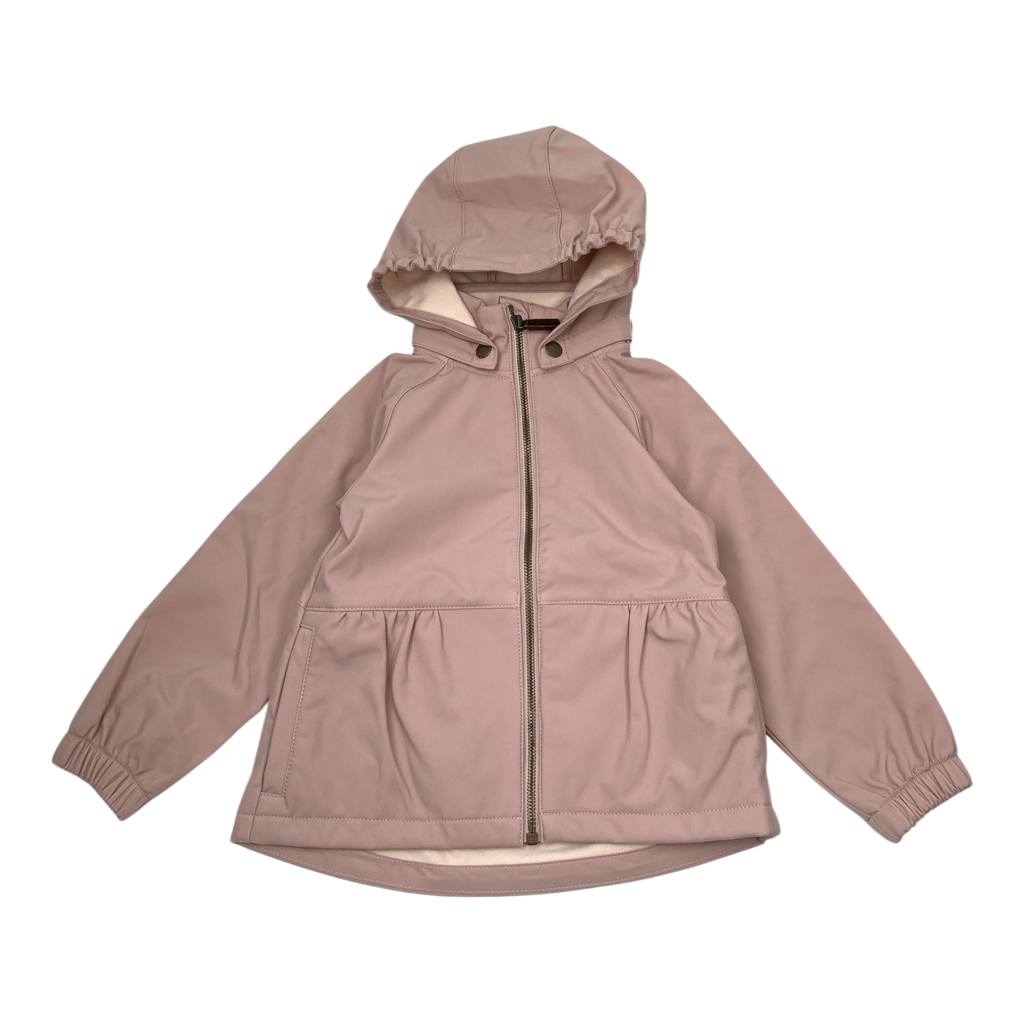 Mini A Ture Matbriddi is a midseason softshell jacket with a removable hood. There is ribbed cuffs, two front pockets, a reflective logo and zipper closure in the front. The waist can be adjusted for better fit.