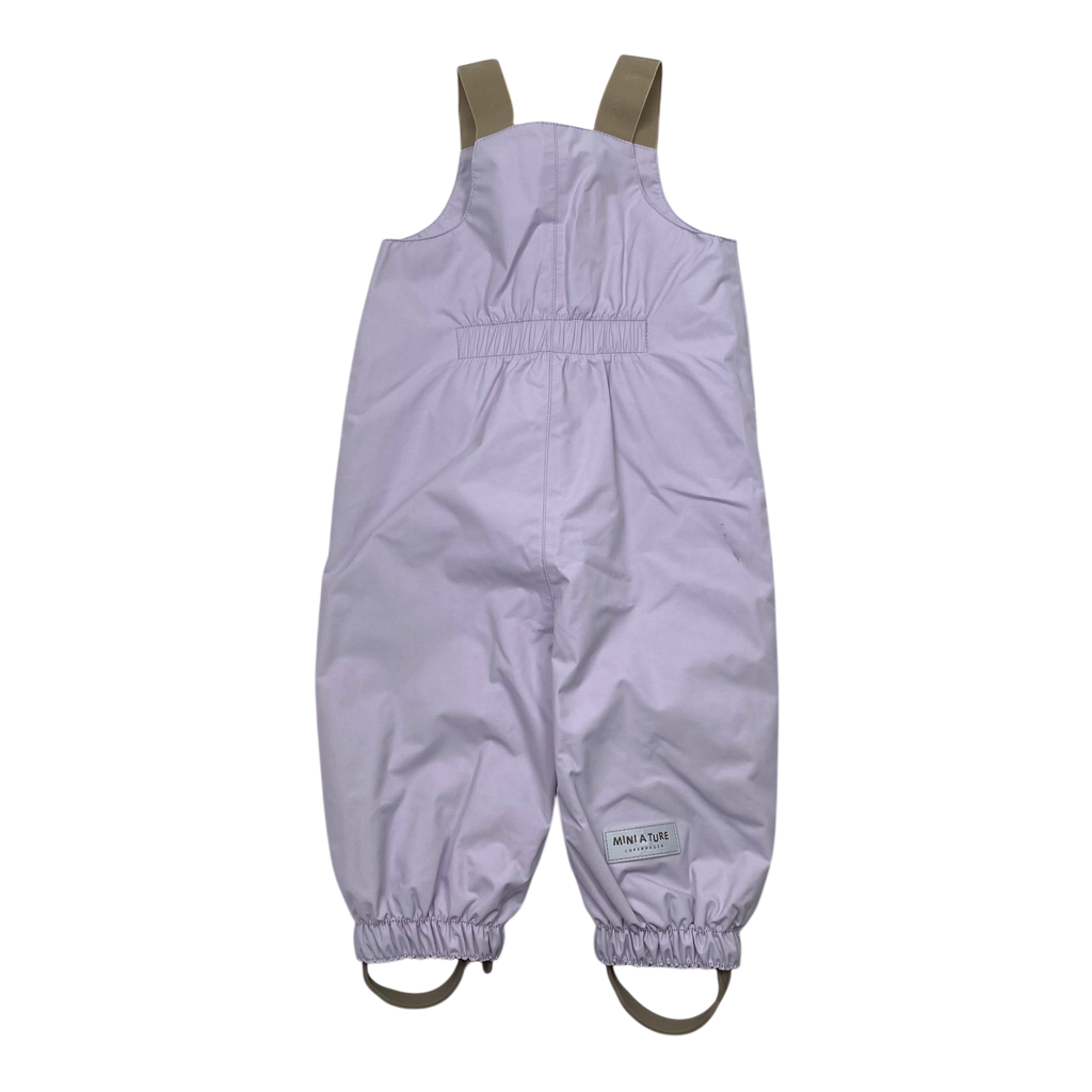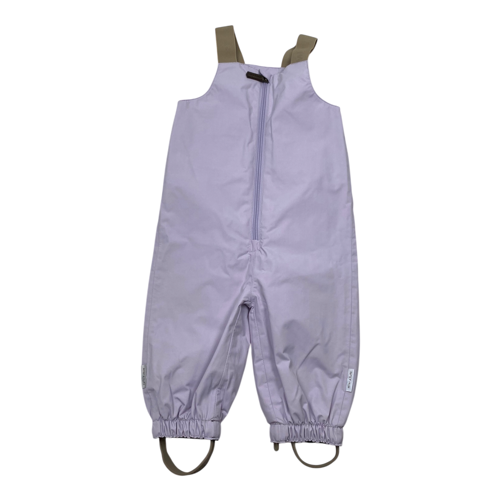 Mini A Ture Matwalentaya spring shell pants with suspenders and rubber stirrups. The item has a stain.