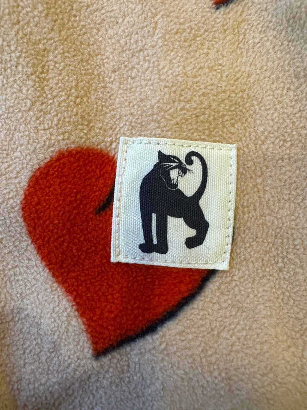 Dieser bezaubernde Onesie von mini rodini verbindet Komfort mit coolem Style. Die fröhlichen roten Herzen auf dem weichen, warmen Fleece-Material machen es zum idealen Begleiter für aktive Kids. Perfekt für die kalte Jahreszeit, bietet es bequemen Schutz und trendiges Design. Für Mütter, die auf hochwertige secondhand Kinderkleidung setzen.
