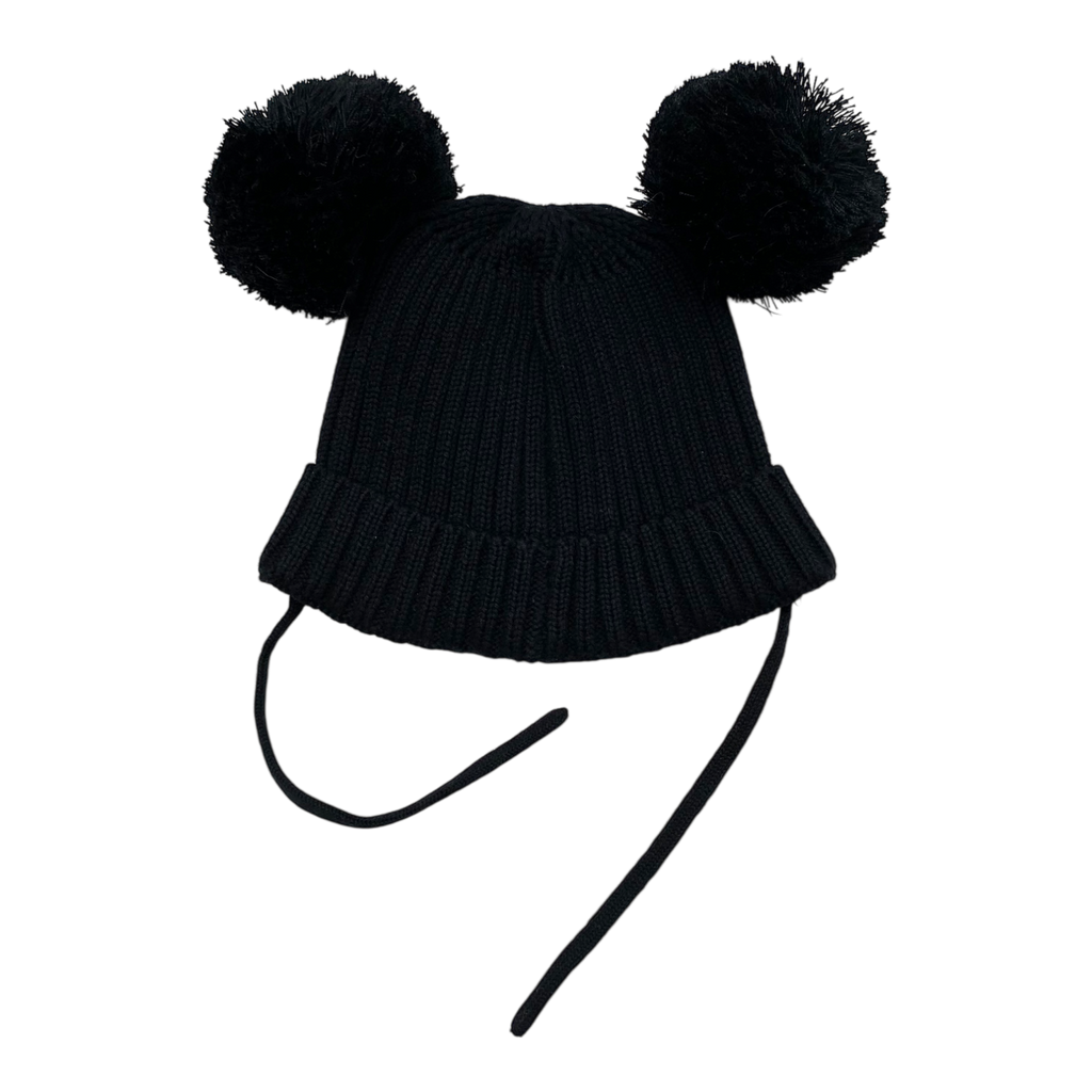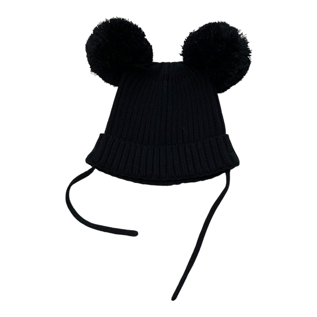 Mini Rodini pom knitted beanie, black | 44/46cm