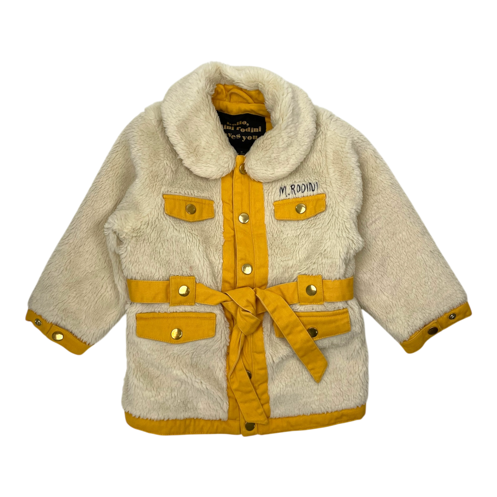 Mini Rodini teddy jacket with snap buttons in the front. Detachable belt and other details woven canvas fabric.