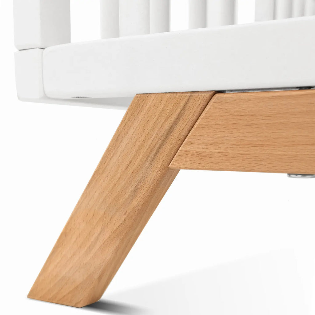 - Buchenholz weiß lackiert; Füße Buche natur