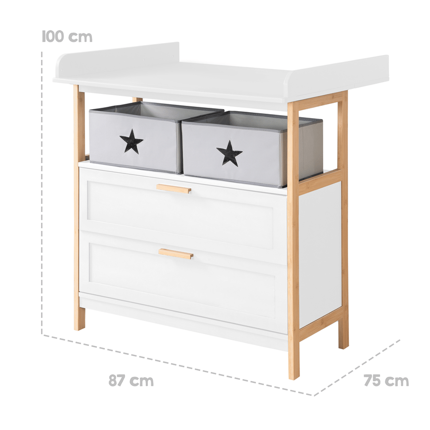 - inklusive abnehmbarem Wickelansatz und 2 Stoffboxen