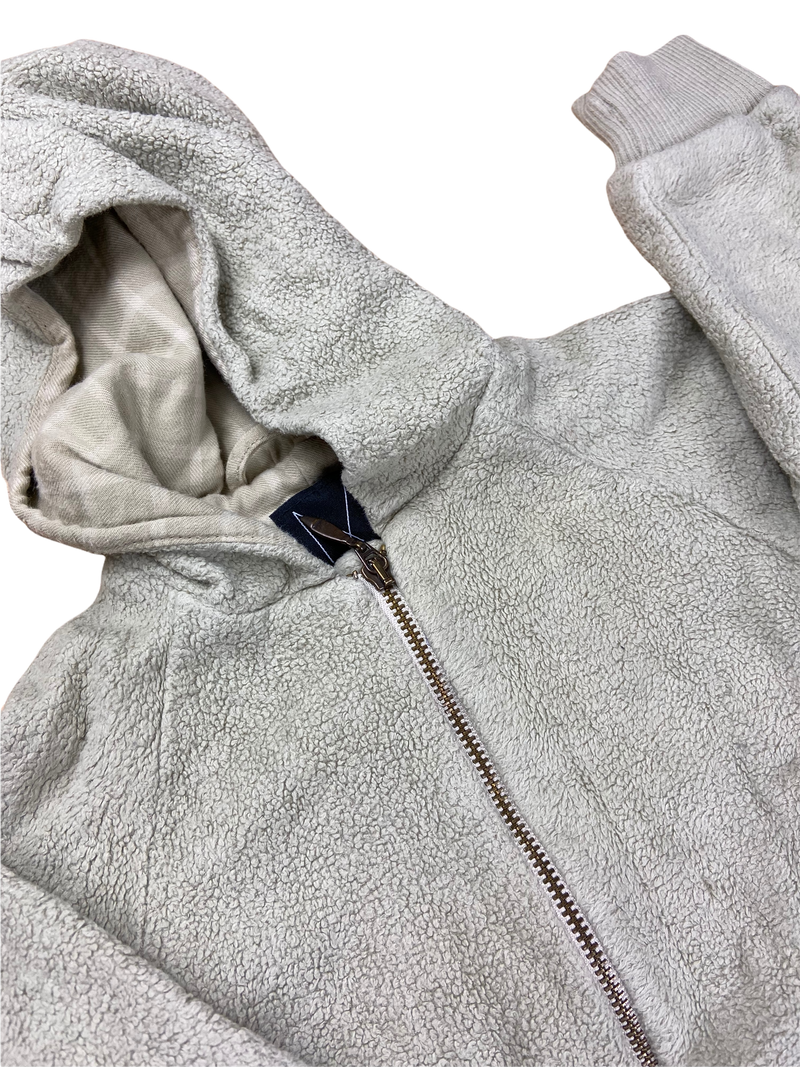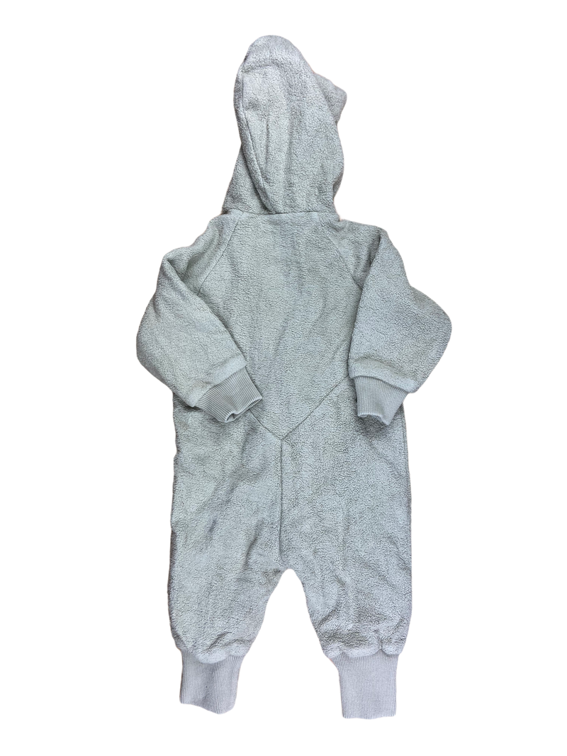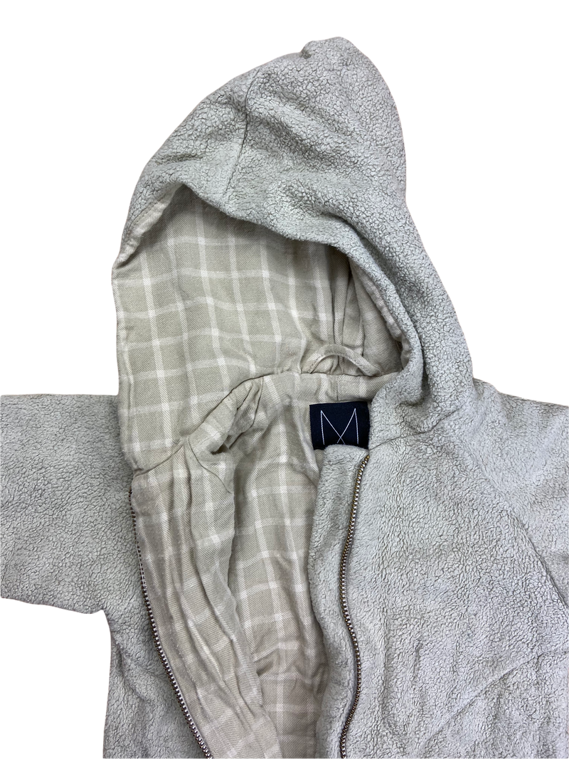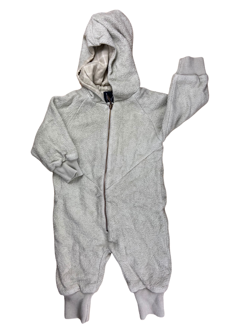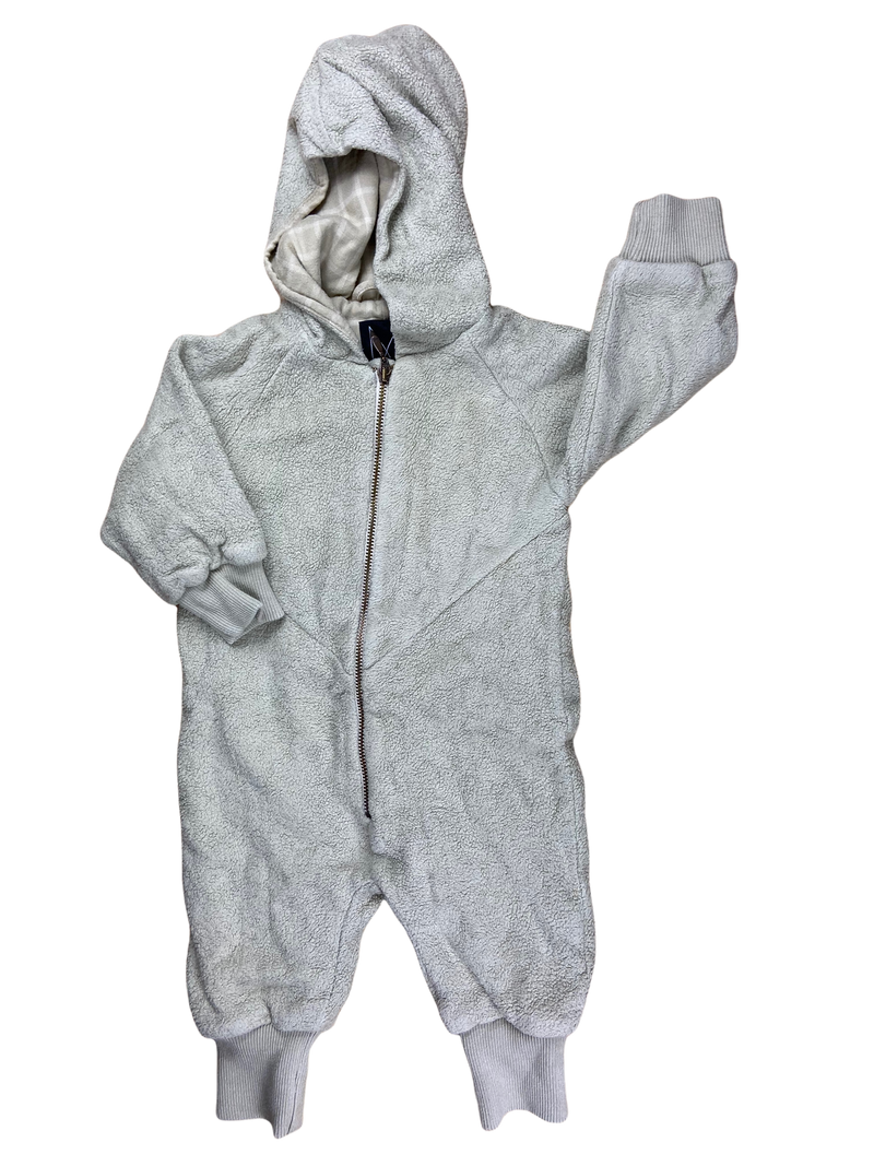 Perfekt für die übergangszeit: Weicher Overall in beige/grau von Monkind mit Reißverschluss und Kapuze.