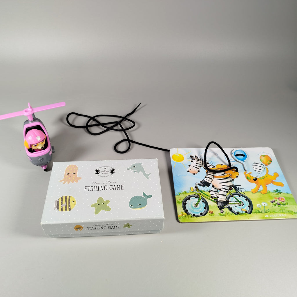 Hol dir das vielseitige Spieleset, das Kinderherzen höher schlagen lässt! Dieses Set enthält ein spannendes Holzfischspiel von Oscar & Ellen, das mit magnetischen Meeresfiguren und zwei Angelruten samt Magnet verzaubert. Ein buntes Lacing-Kartenspiel mit Zebra-Motiv fördert die Feinmotorik. Das Paw Patrol Skye Helikopter-Set rundet das Abenteuer ab und regt zu kreativem Rollenspiel an. Gib diesen liebevoll gefertigten Spielzeugen ein neues Zuhause und freu dich auf strahlende Kinderaugen! Hinweis: Enthält Kleinteile, nicht geeignet für Kinder unter 3 Jahren. Erstickungsgefahr!