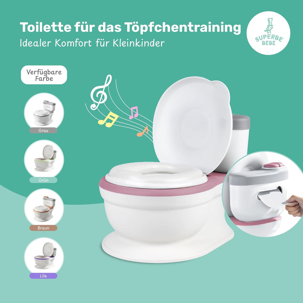 🎶 SPASSIG KINDERKLO : Ausgestattet mit Spülgeräusch und Musik, um das Töpfchentraining lustig und motivierend zu gestalten.