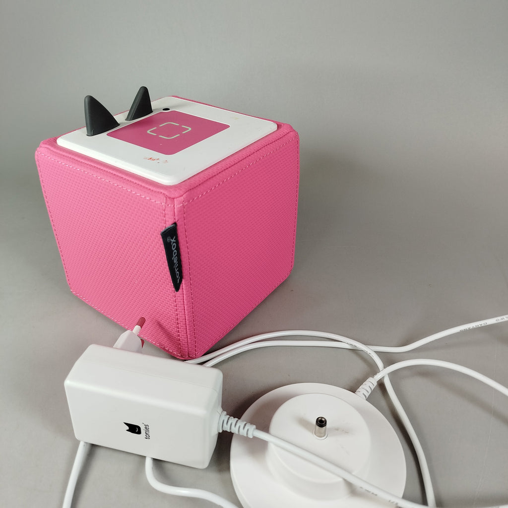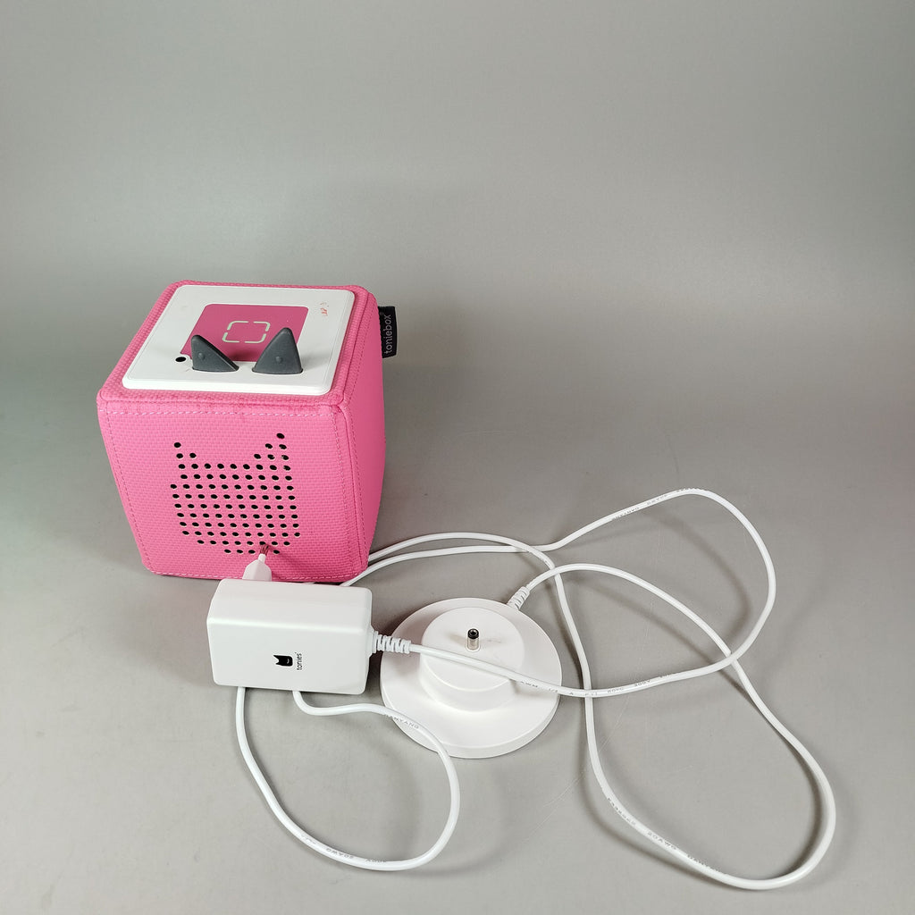 Hol dir den Tonies Audio-Player Würfel in Rosa und erlebe spannenden Hörspaß für Kinder. Das Set enthält die Toniebox, eine passende Ladestation und das Netzteil. Der weiche Stoffbezug mit Stoffohren macht die Box robust und kinderfreundlich. Das Gerät zeigt leichte Gebrauchsspuren, funktioniert aber einwandfrei. Gib diesem beliebten Hörspielgerät ein neues Zuhause und fördere spielerisches Zuhören und Fantasie. Hinweis: Enthält elektronische Bauteile, geeignet für Kinder ab 3 Jahren. Das Produkt befindet sich in gutem gebrauchten Zustand.