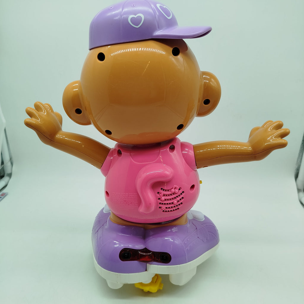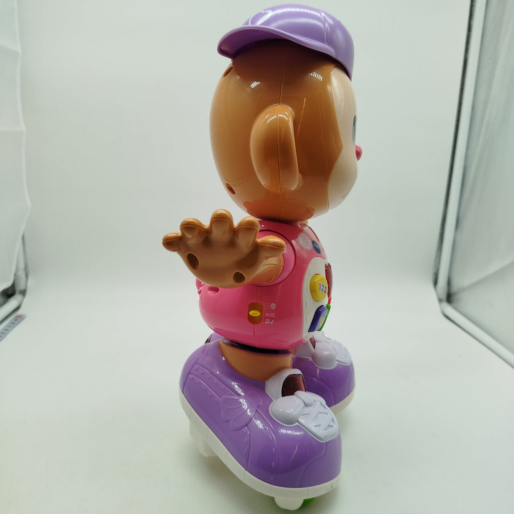 Hol dir den interaktiven VTech Affen und bring Bewegung und Lernspaß ins Kinderzimmer! Der fröhliche Affe trägt eine lila Kappe und Schuhe und hat bunte Knöpfe mit Symbolen wie 123, ABC und DJ, die Töne, Lichter und Lernfunktionen aktivieren. Das elektronische Spielzeug besteht aus stabilem Kunststoff, ist vollständig funktionsfähig, zeigt jedoch sichtbare Gebrauchsspuren. Verpackung und Anleitung fehlen, aber der Affe selbst ist komplett und einsatzbereit. Das Spielzeug befindet sich in gutem gebrauchten Zustand. Hinweis: Nicht für Kinder unter 3 Jahren geeignet, da Kleinteile verschluckt werden können.