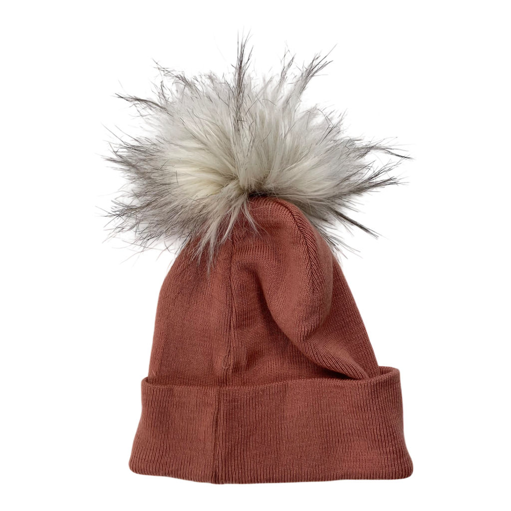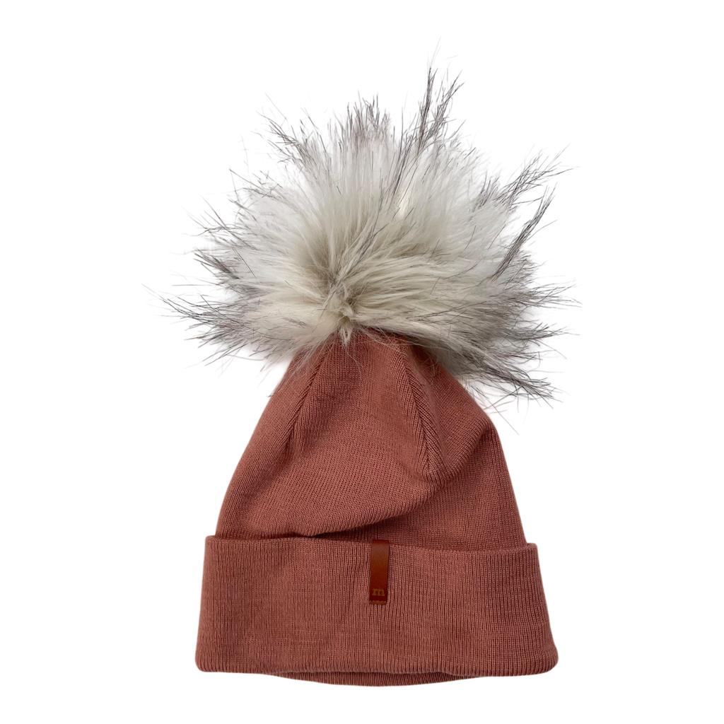Metsola knit merino beanie with pom, dusky rose | 3-4y
