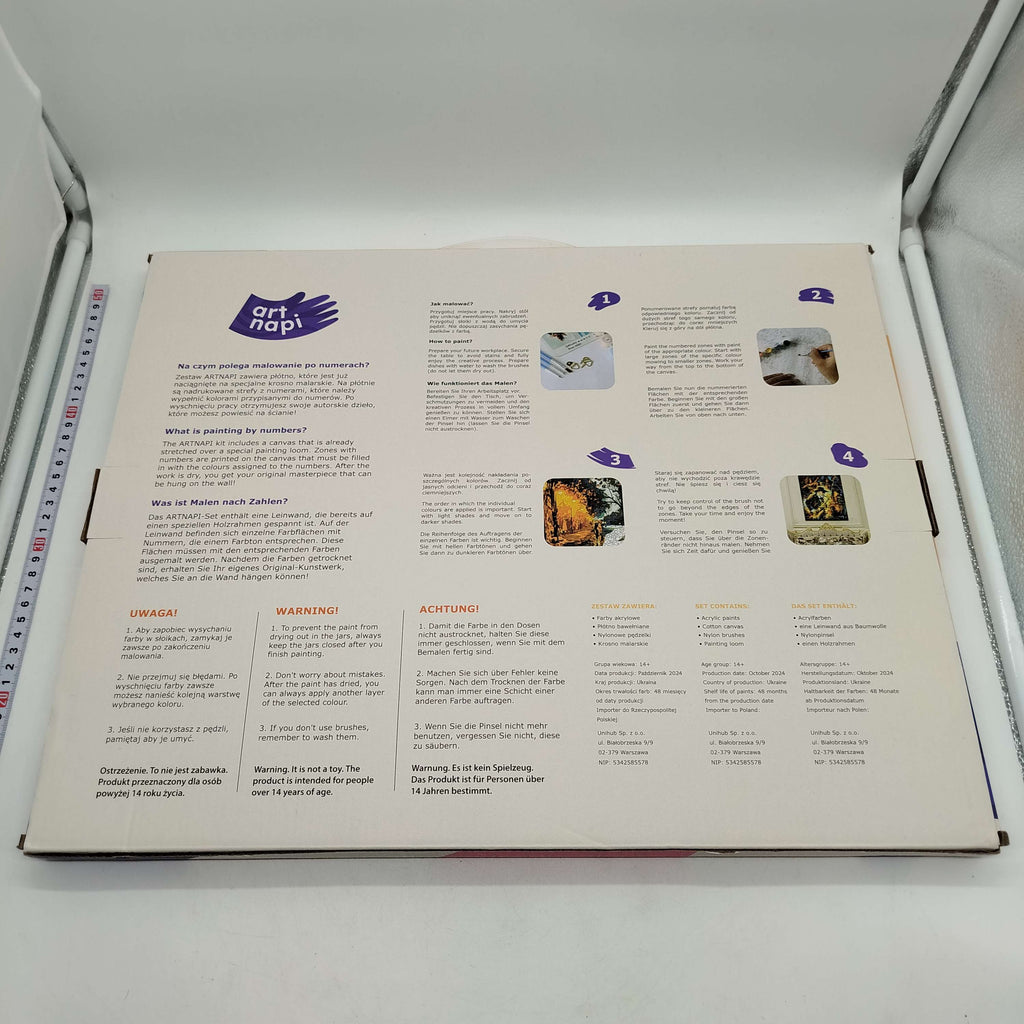 Das Bastelset Painting by Numbers – AP4050933 von art napi ermöglicht das Malen eines weißen Pferdes und eines braunen Fohlens auf einer Baumwollleinwand. Mithilfe beiliegender Acrylfarben und Pinsel wird die Umsetzung nach Vorgabe erleichtert. Das Set fördert Kreativität und Konzentration durch die schrittweise Ausfüllung der nummerierten Flächen. Altersempfehlung: Alle Altersgruppen. Achtung: Nicht für Kinder unter 14 Jahren geeignet.