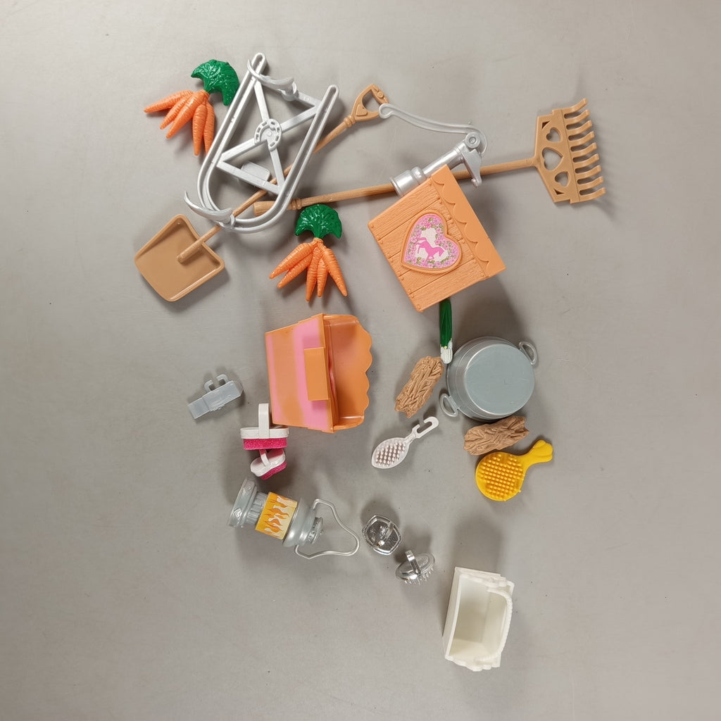 Hol dir das Barbie Pferdestall-Spielset mit 15 Teilen und erlebe spaßige Reitabenteuer. Enthalten sind Zubehörteile wie Rechen, Schaufel, Karotten, Futtereimer und Bürsten für die liebevolle Pferdepflege. Das Set stammt aus dem Jahr 1998 und befindet sich in gutem gebrauchten Zustand. Gib diesem Barbie-Spielzeug ein neues Zuhause und fördere kreatives Rollenspiel. Hinweis: Die Vollständigkeit konnte nicht überprüft werden.