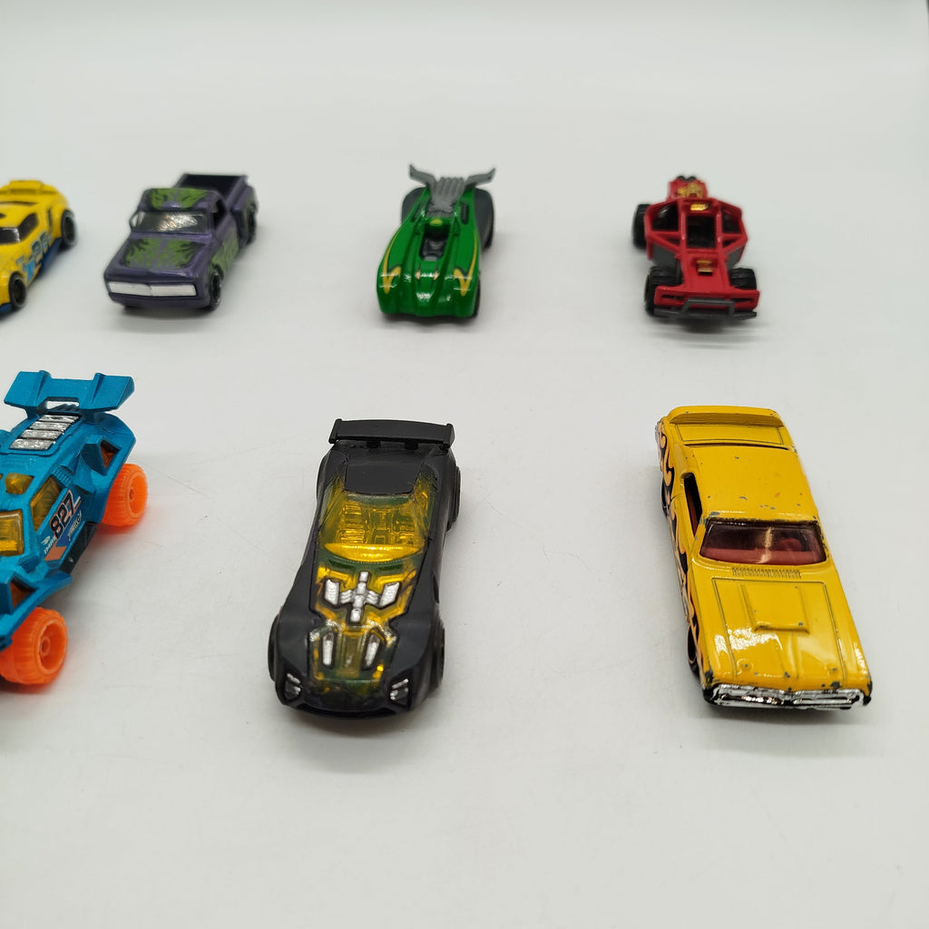 Hol dir das Hot Wheels Spielzeugauto-Set mit 10 detailreichen Mini-Fahrzeugen für rasante Abenteuer. Die Autos aus robustem Kunststoff sind mehrfarbig gestaltet und zeigen coole Aufdrucke wie „EX-CAVATOR“ und „CRUNCH TIME“. Ideal für Sammler oder Fahrzeugfans. Das Set befindet sich in einem sehr guten gebrauchten Zustand, die Verpackung fehlt. Gib diesen Autos ein neues Zuhause und erlebe nachhaltigen Spielspaß!
