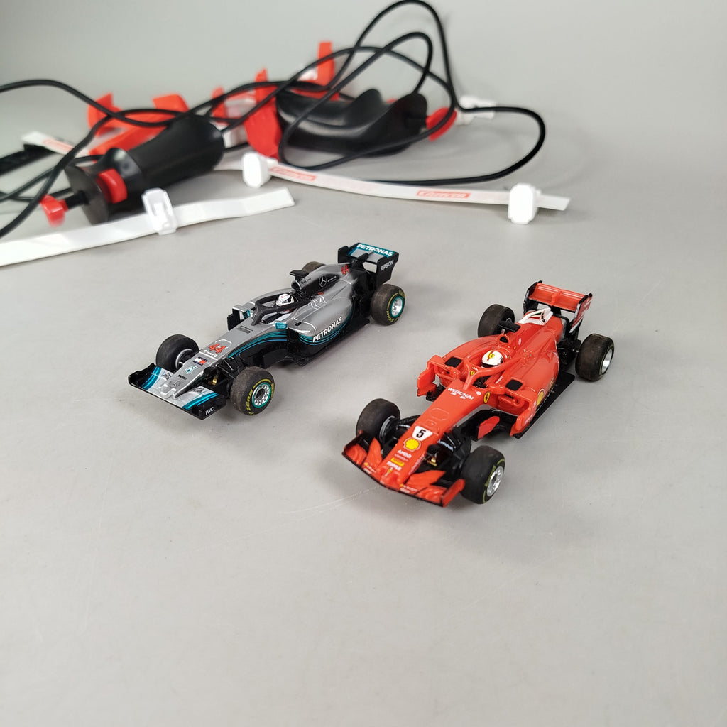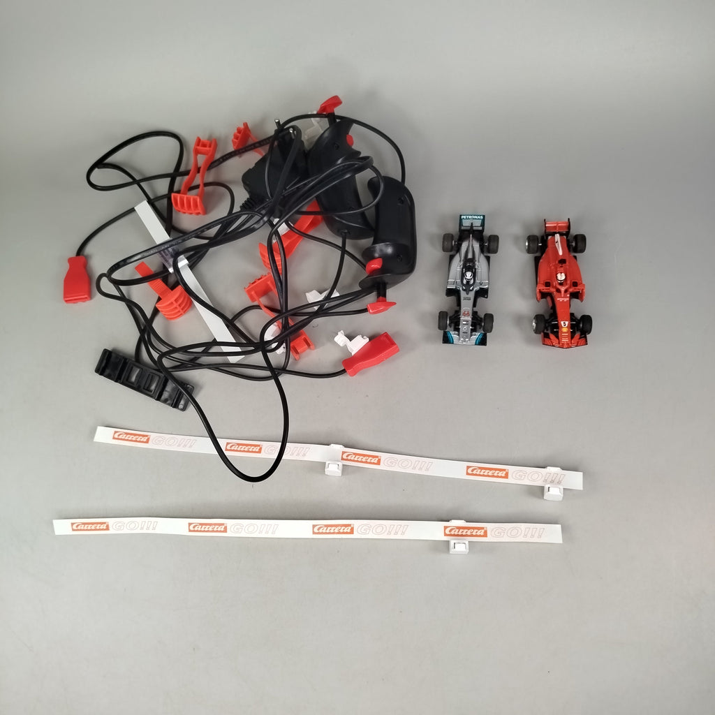 Hol dir die Carrera GO!!! Rennbahn und bring rasanten Rennspaß ins Kinderzimmer! Dieses Set enthält zwei detailreiche Slotcars mit Mercedes- und Ferrari-Design, zahlreiche Streckenteile, Start-Ziel-Sektion, Rundenzähler und zwei kabelgebundene Handregler. Ideal für kleine Rennfahrer und Sammler. Das Set befindet sich in gutem gebrauchten Zustand mit sichtbaren Gebrauchsspuren, Verpackung fehlt. Die Vollständigkeit konnte nicht überprüft werden. Hinweis: Enthält elektrische Komponenten, nur unter Aufsicht verwenden. Gib dieser Rennbahn ein zweites Leben und habe Spaß mit spannenden Duellen auf der Piste!