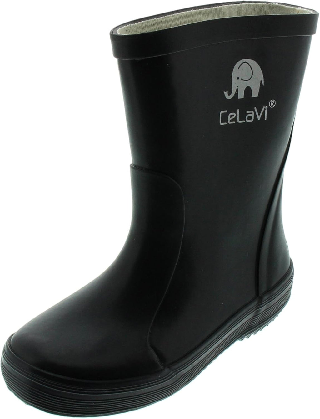 Celavi Kinder Unisex wasserdichte Gummi-Laarzen, 100 % natürliche Gummi-Regenlaarzen, Größe: 26, Farbe: Schwarz, 1147