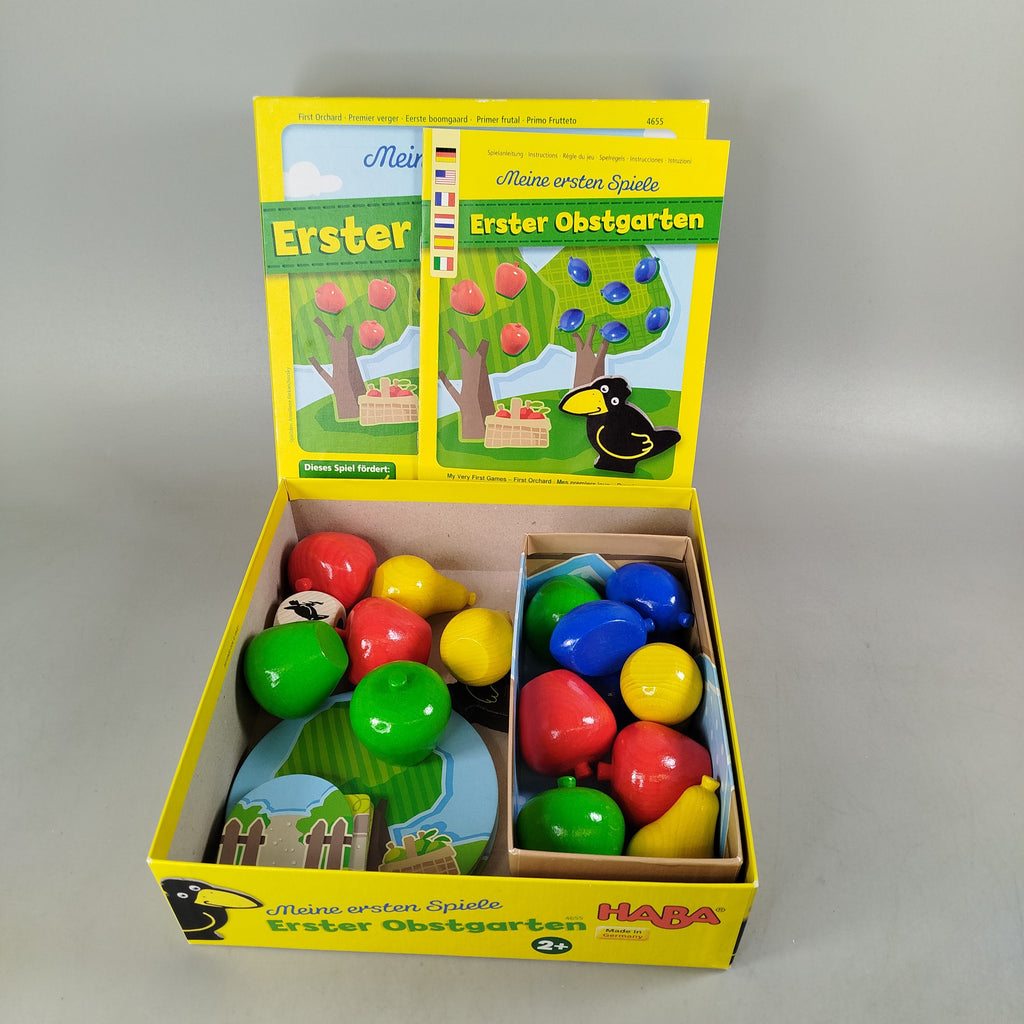 Hol dir das HABA Spiel Erster Obstgarten aus der Reihe Meine ersten Spiele und erlebe gemeinsam spannende Runden im Obstgarten. Das kooperative Brettspiel richtet sich an kleine Kinder und fördert erstes Regelverständnis, Farben und gemeinsames Spielen ohne Konkurrenz. Enthalten sind Spielfiguren aus Holz, Spielplanteile aus Pappe, ein Symbolwürfel sowie weiteres Spielmaterial für mehrere Mitspielende. Gib diesem Spielzeug ein neues Zuhause und schenke ihm ein zweites Leben voller gemeinsamer Spielmomente. Empfohlen ab 2 Jahren. Hinweis gemäß GPSR: Enthält Kleinteile, nicht geeignet für Kinder unter 3 Jahren.