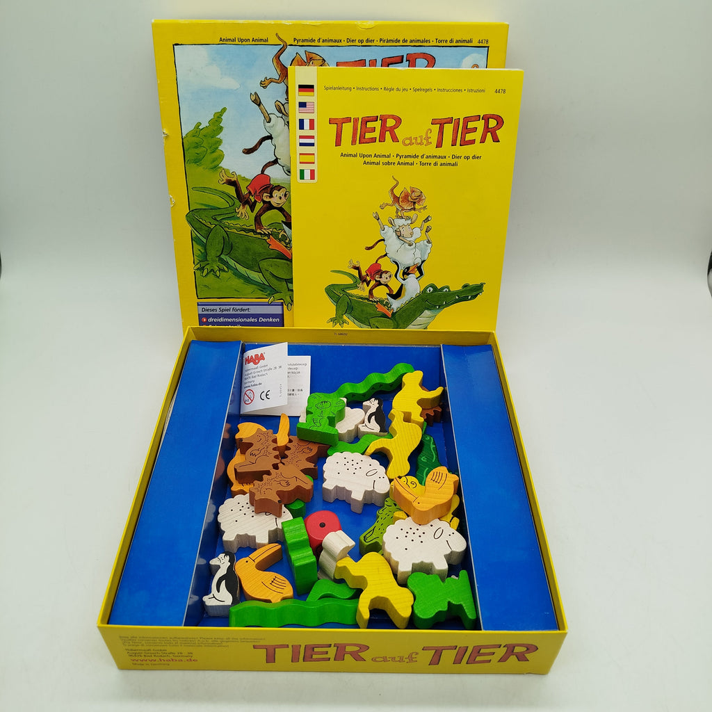 Hol dir das Stapelspiel Tier auf Tier von HABA und bring Bewegung ins Spielregal! Bei diesem wackeligen Geschicklichkeitsspiel stapelst du bunte Holztiere zu einer immer höher werdenden Pyramide. Das Spiel fördert spielerisch Feinmotorik, Auge-Hand-Koordination und dreidimensionales Denken. Enthalten sind mehrere Tierfiguren aus Holz sowie ein Spielwürfel und eine Anleitung. Gib diesem Klassiker ein neues Zuhause und schenke ihm ein zweites Spieleleben. Geeignet für Kinder ab 4 Jahren.
